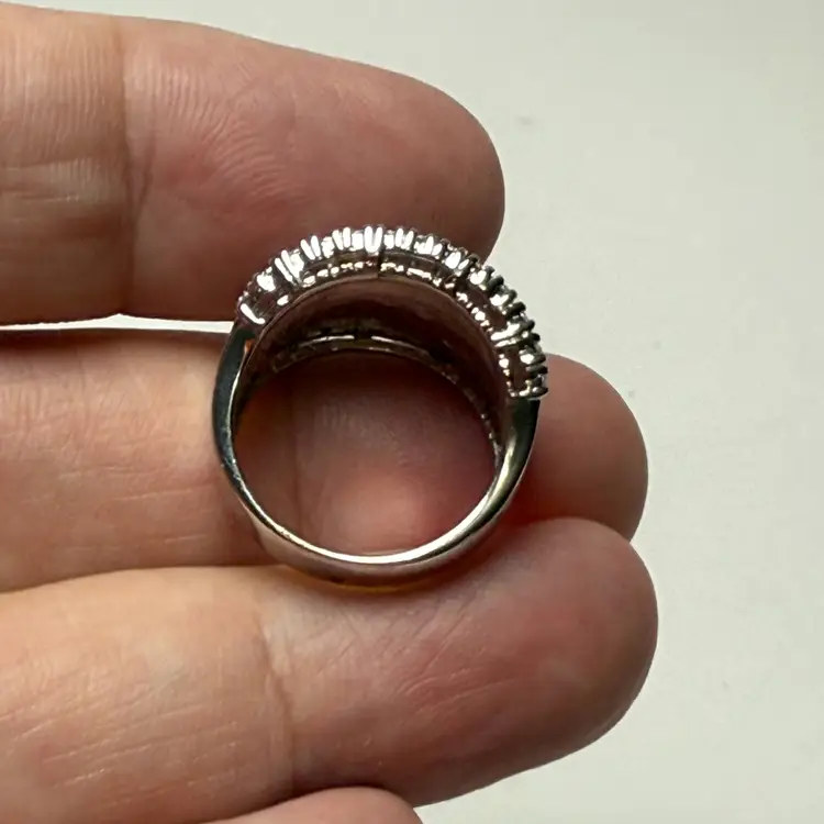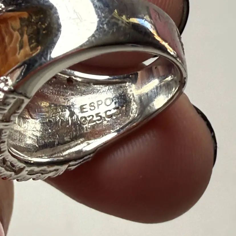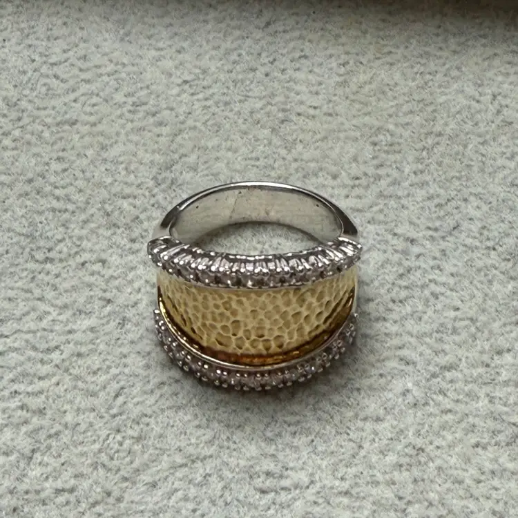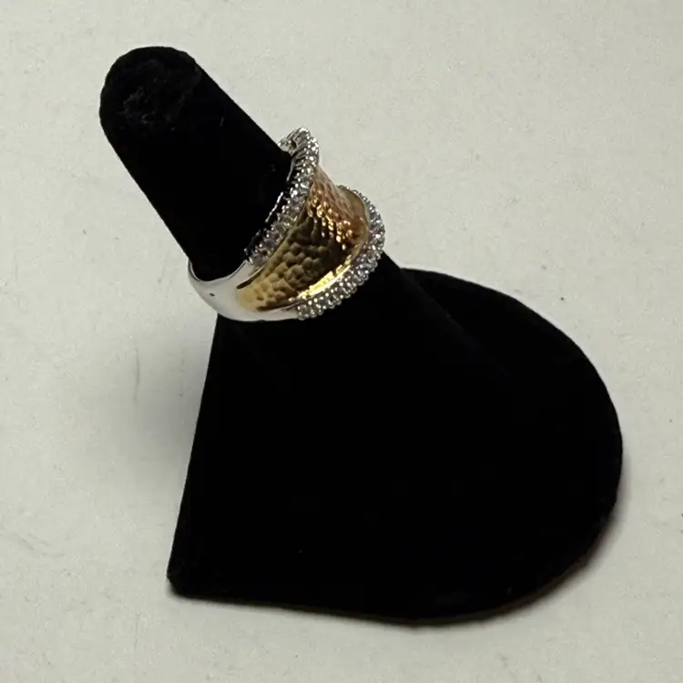 Joseph Esposito ESPO Sterling 925 Silver Gold Two Tone Hammered CZ Ring Size 6. About 6.84 grams. No missing stones. Good condition with some light wear to the band. Cubic Zirconia accents.