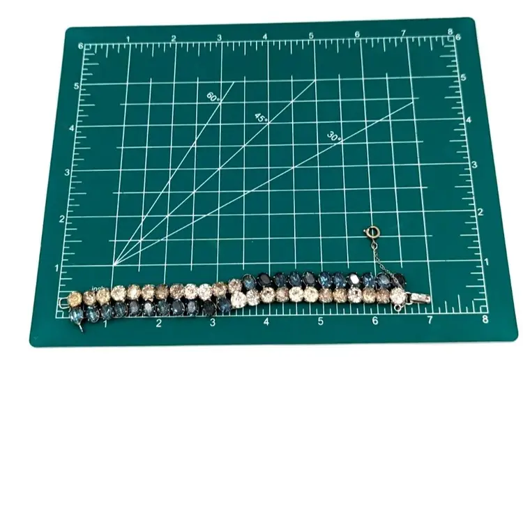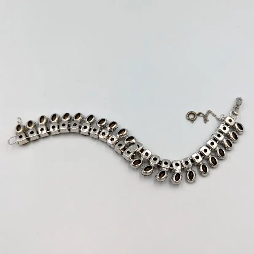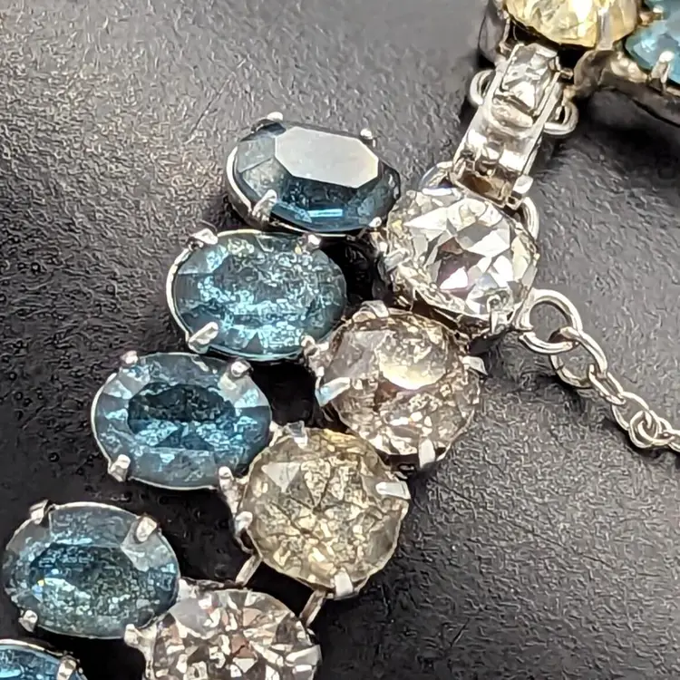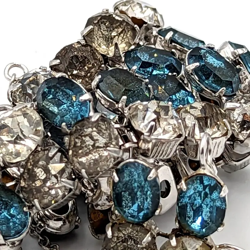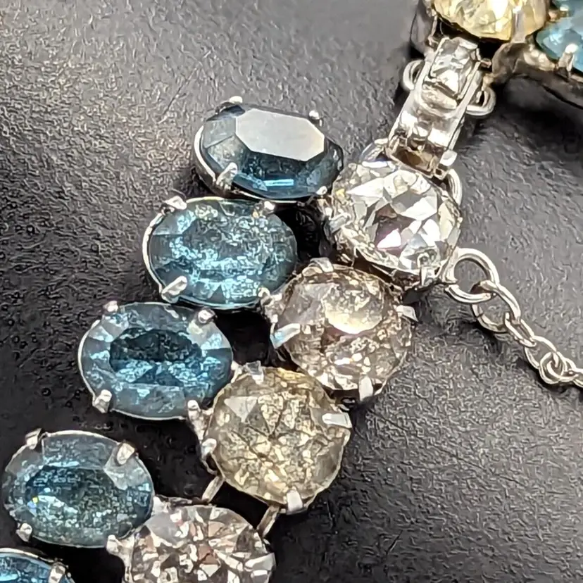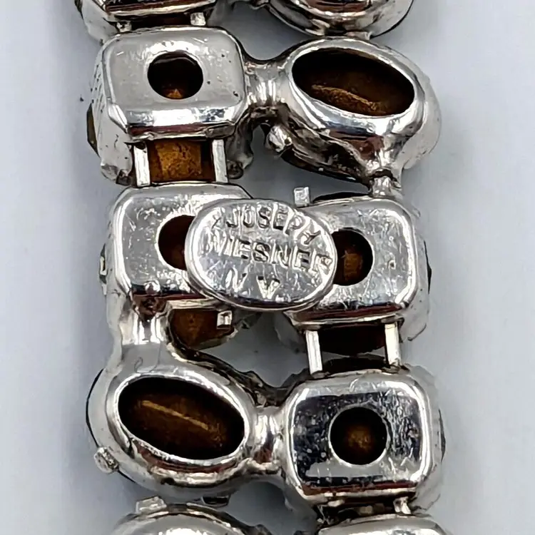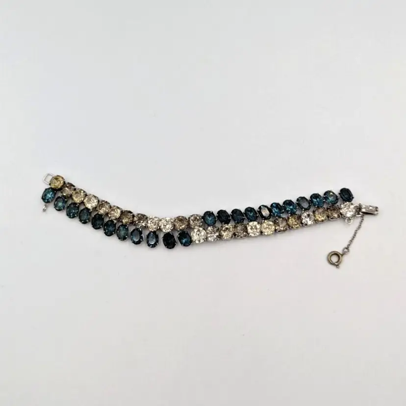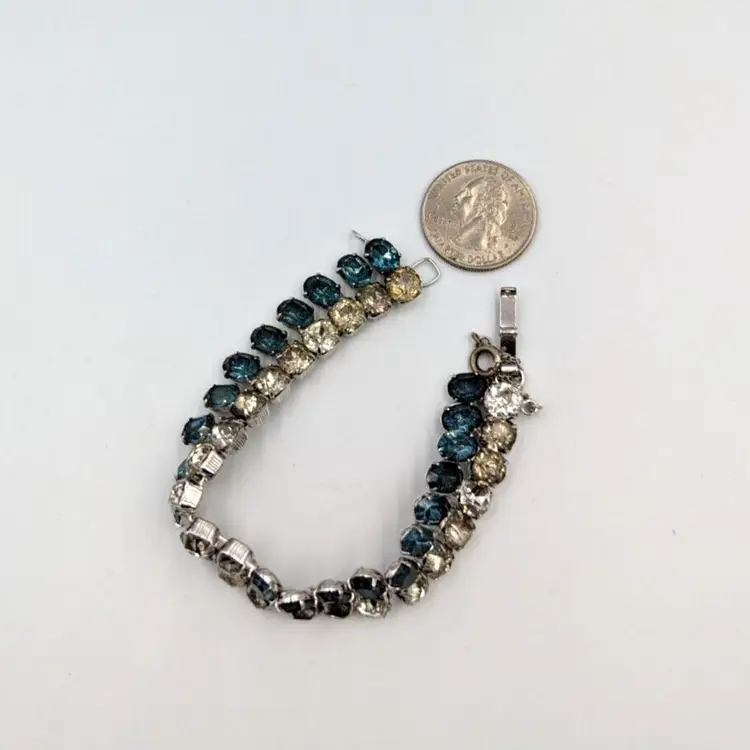 Joseph Wiesner NY Bracelet Vintage Clear And Blue Rhinestones Silver Tone 7" Signed Joseph Wiesner N.Y. Fold over Clasp, safety chain Good Vintage Condition