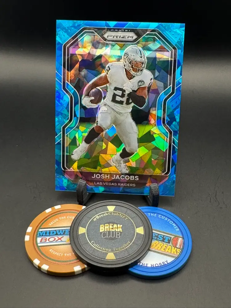 Josh Jacobs Blue Cracked Ice 28/99 *Jersey Number Match* 2020 Prizm Las Vegas Raiders