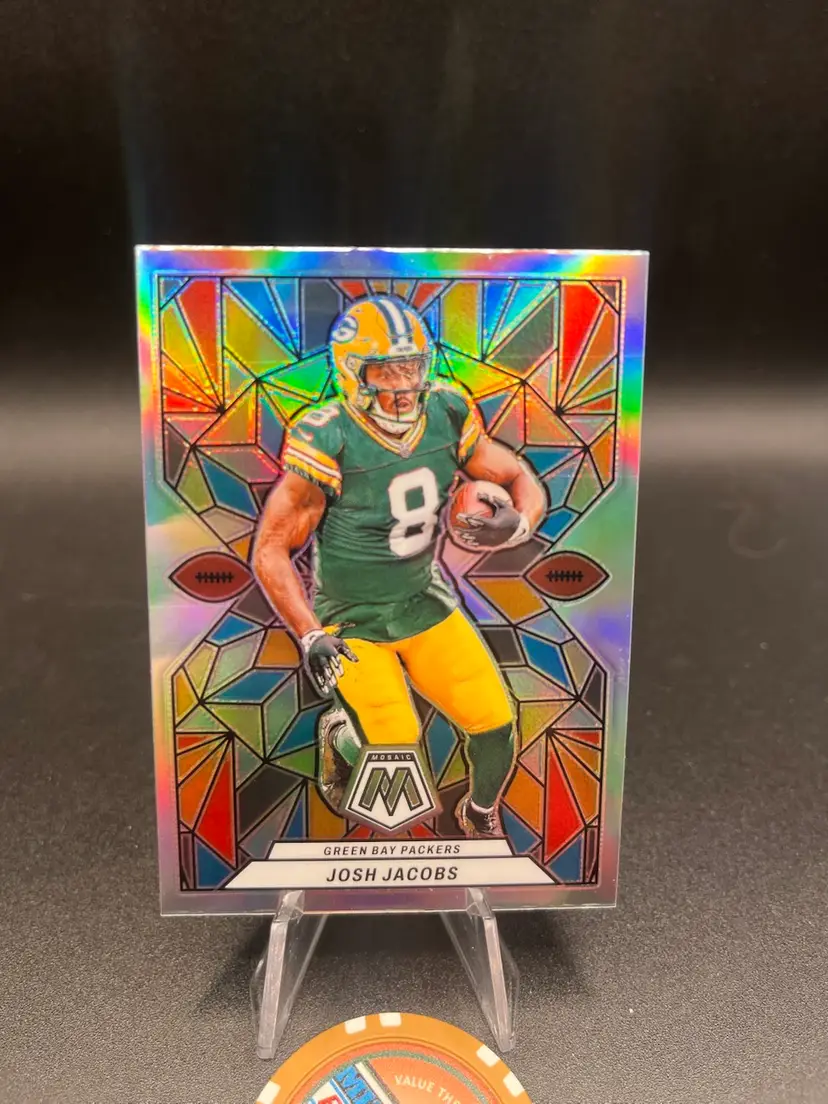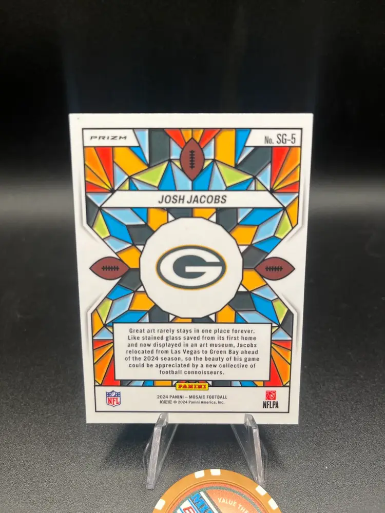 2024 Mosaic Stained Glass Case Hit of Josh Jacobs. Green Bay packers.
