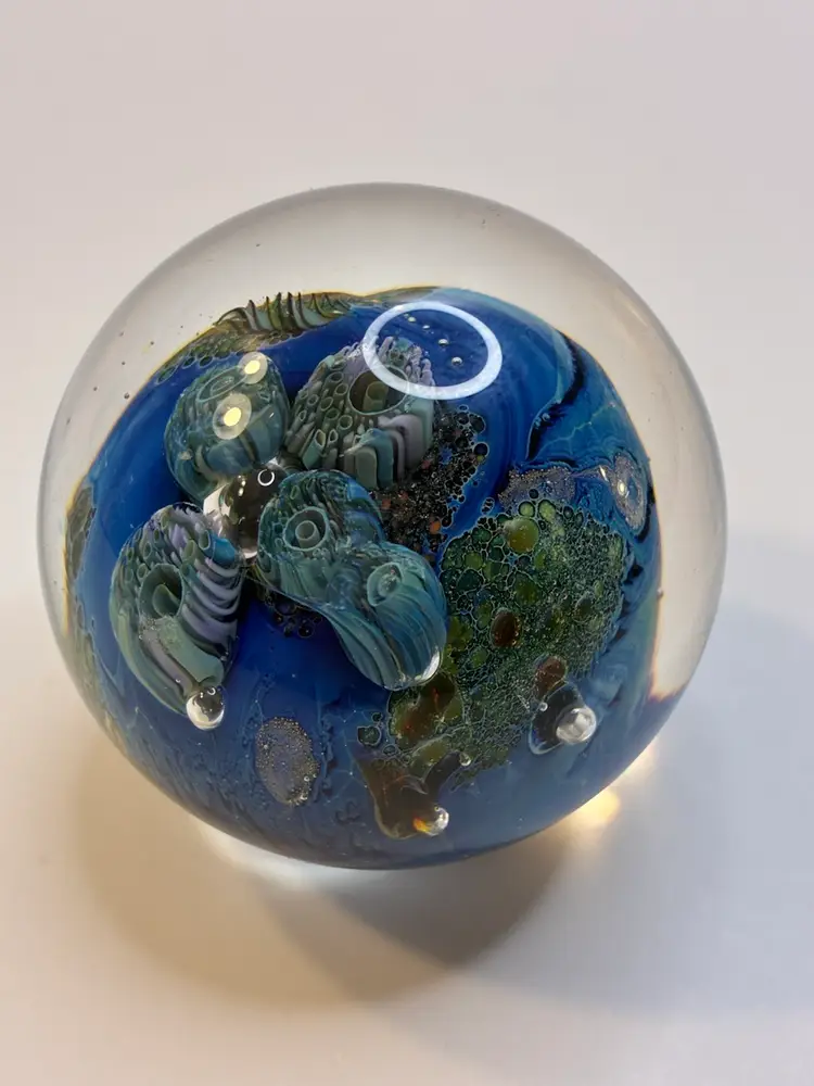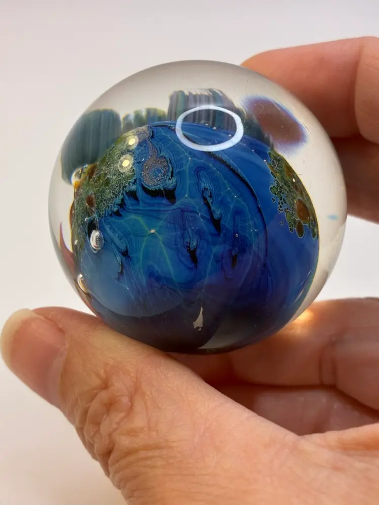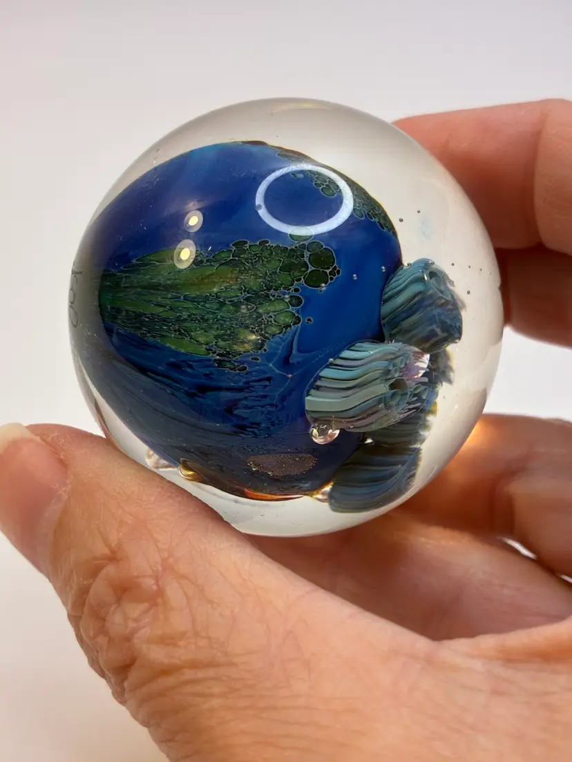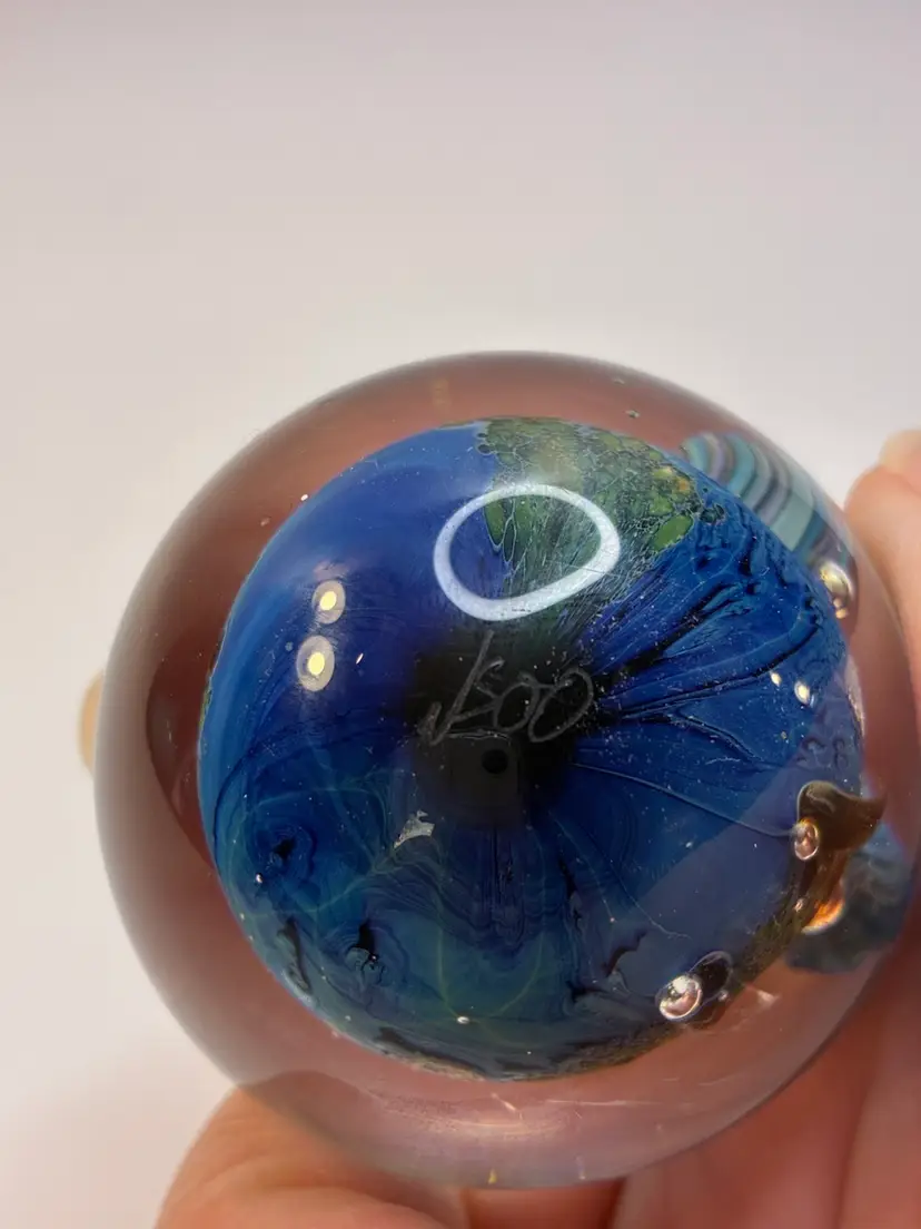 Josh Simpson Art Glass 1.5 Inch Inhabited Planet Signed and Dated "JS00"