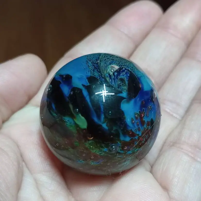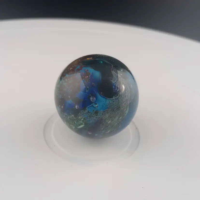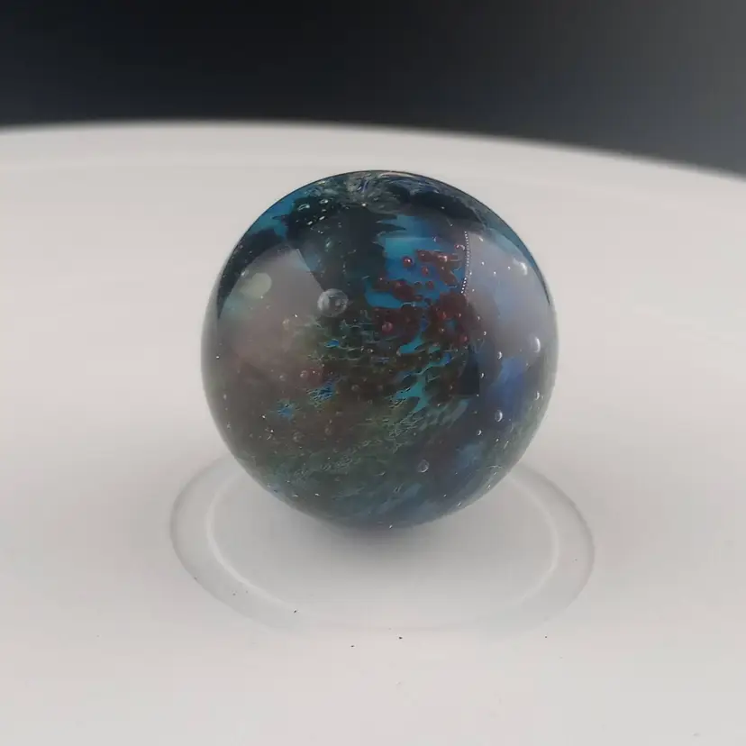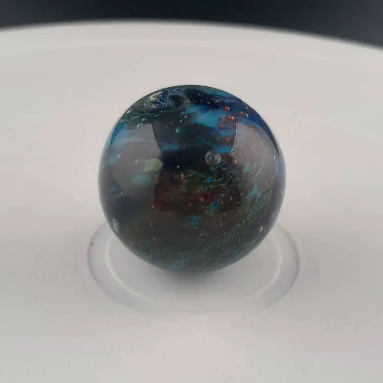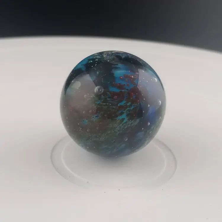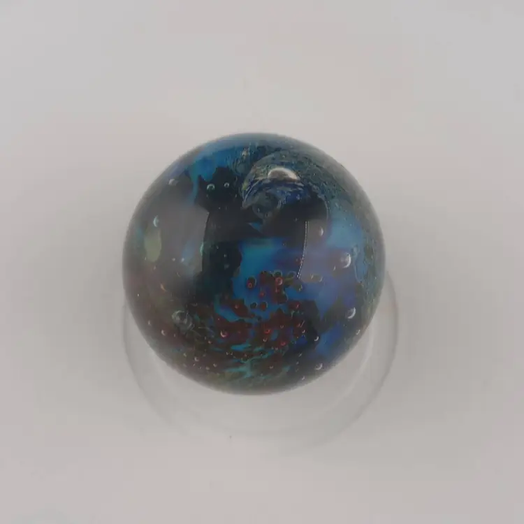 This is a spectacular piece of art glass by Josh Simpson, made in 2001. It appears to be part of his Inhabited Planet series. It looks like a galaxy and it looks like a coral reef. It is one of the most amazing pieces of glass I've ever seen.
