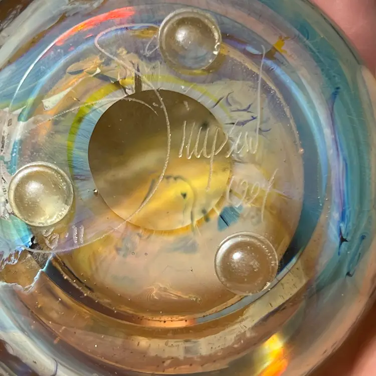 Reminds me of a moon, about 3” across and prominently signed by Josh Simpson 1994, who’s wife is a NASA Shuttle astronaut, Cady Coleman!