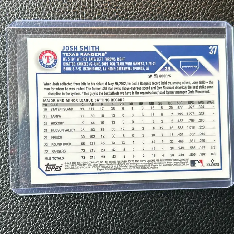 Josh Smith 2023 Topps Chrome Sapphire Rookie Gold Refractor /50