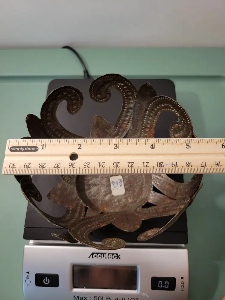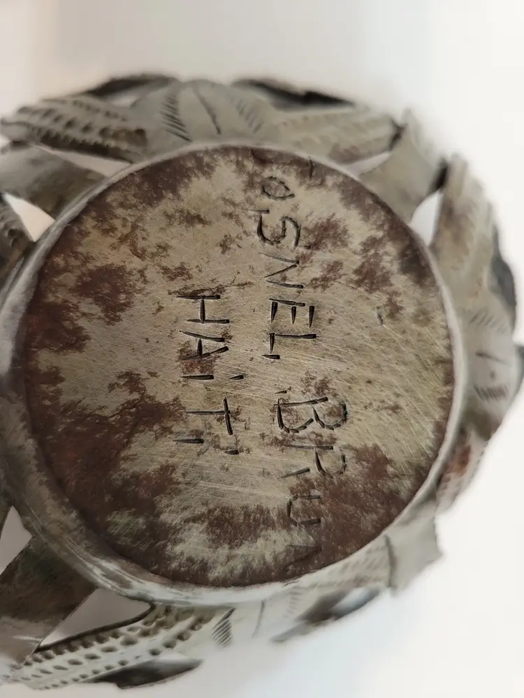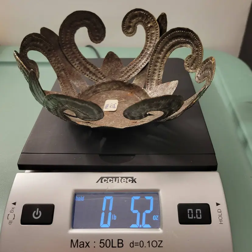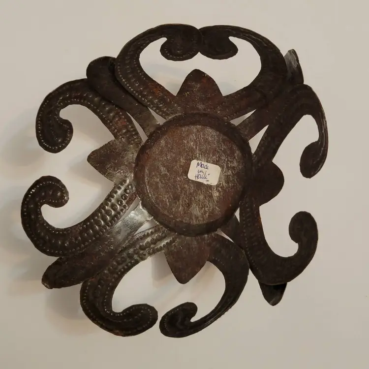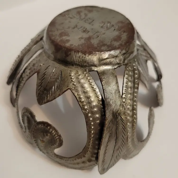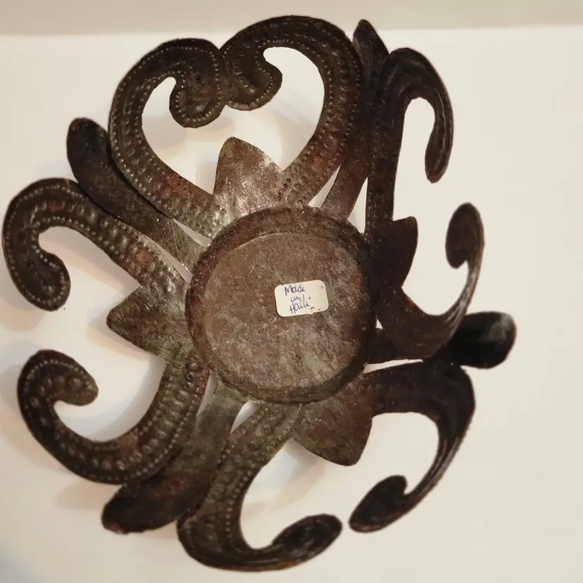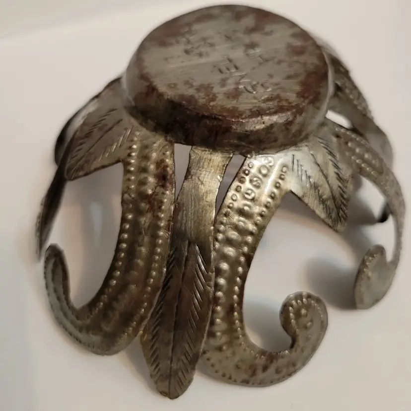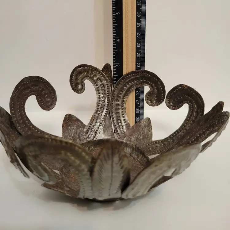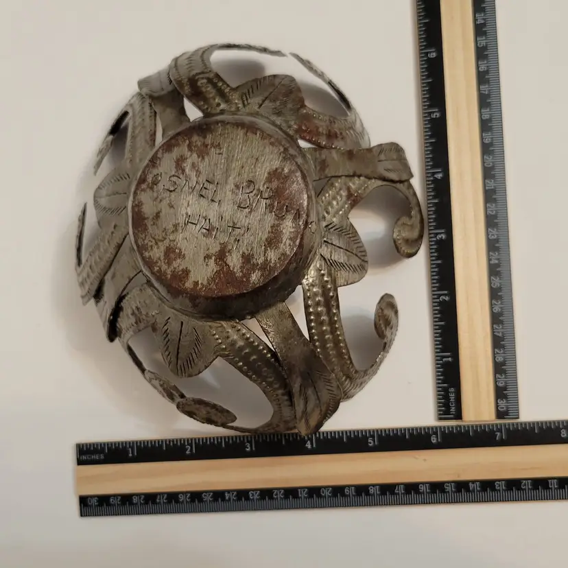 Josnel Bruno Haitian Folk Art Brutalist Hand Hammered Upcycled Steel Drum Bowl Candleholder Vintage Metalwork.