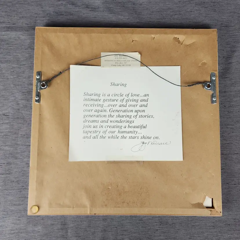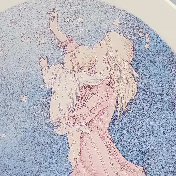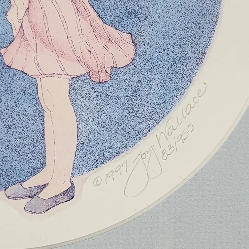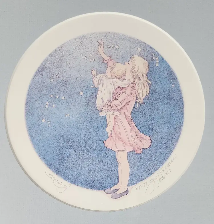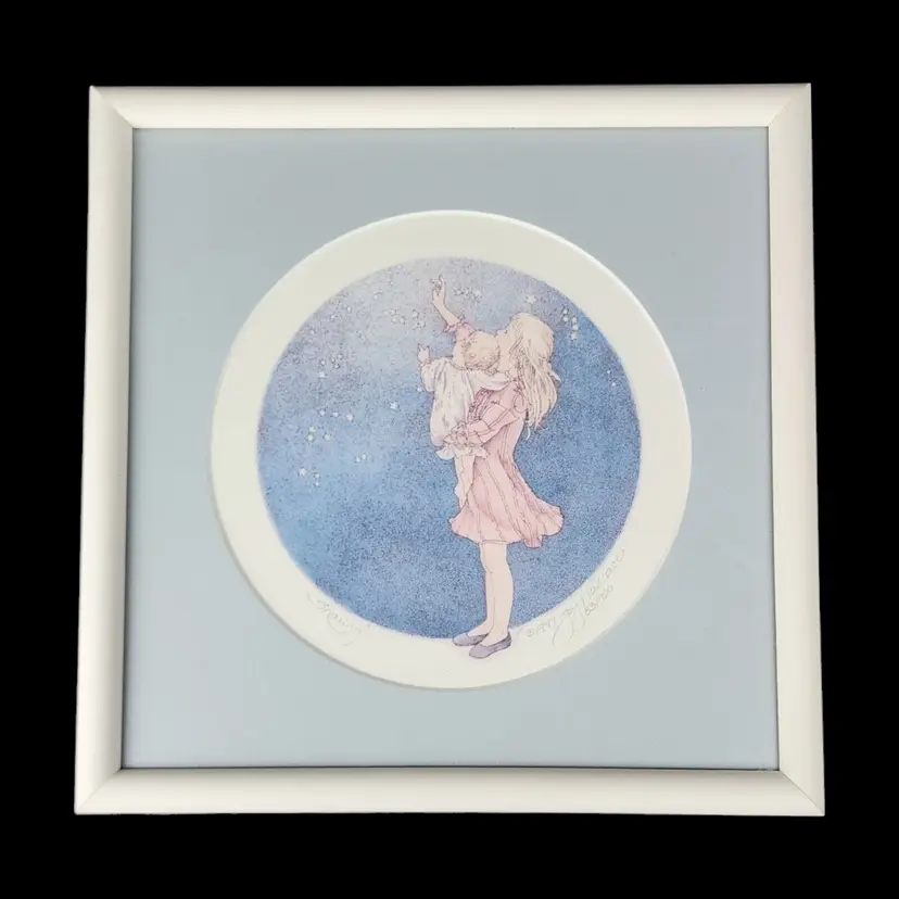 Artist: Joy Wallace Unit of Sale: Single Piece Signed By: Joy Wallace Color 2: Pink Image Orientation: Landscape Color 1: Blue Signed: Yes Color 4: White Color 3: Yellow Period: Contemporary (1970 - 2020) Title: Sharing Material: Paper Item Length: 11.5" Original/Licensed Reprint: Original Framing: Framed Subject: Baby, Constellations, Cosmos, Family, Heaven, Nursery, Sisters, Star Light Star Bright, Starlight, Stars, Twinkle Twinkle Little Star Type: Print Year of Production: 1997 Theme: Art, Domestic & Family Life, Fairy Tales, Fantasy, Inspirational, Love, Mythological, Nature, People Style: Contemporary Art Features: Limited Edition, Numbered Production Technique: Lithography Country/Region of Manufacture: United States Item Width: 11.5"