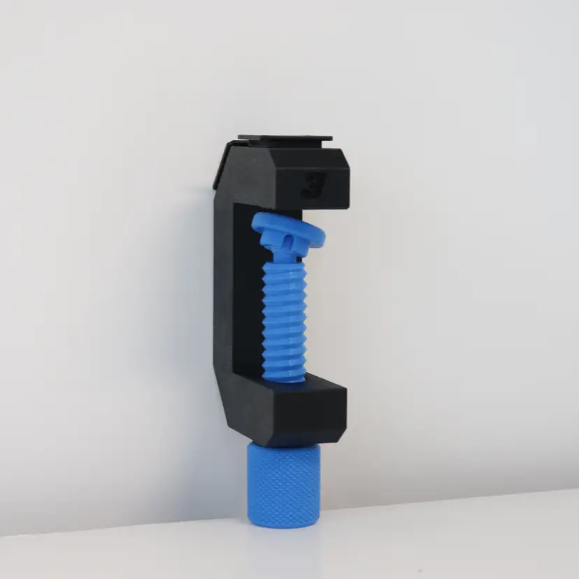 This is my custom designed table clamp made to hold your diecast track steady during races. It’s compatible with standard orange track and is great for keeping your starting gate or launch section from sliding around.
