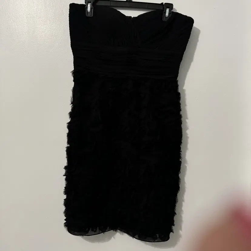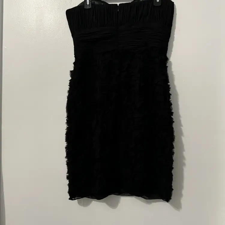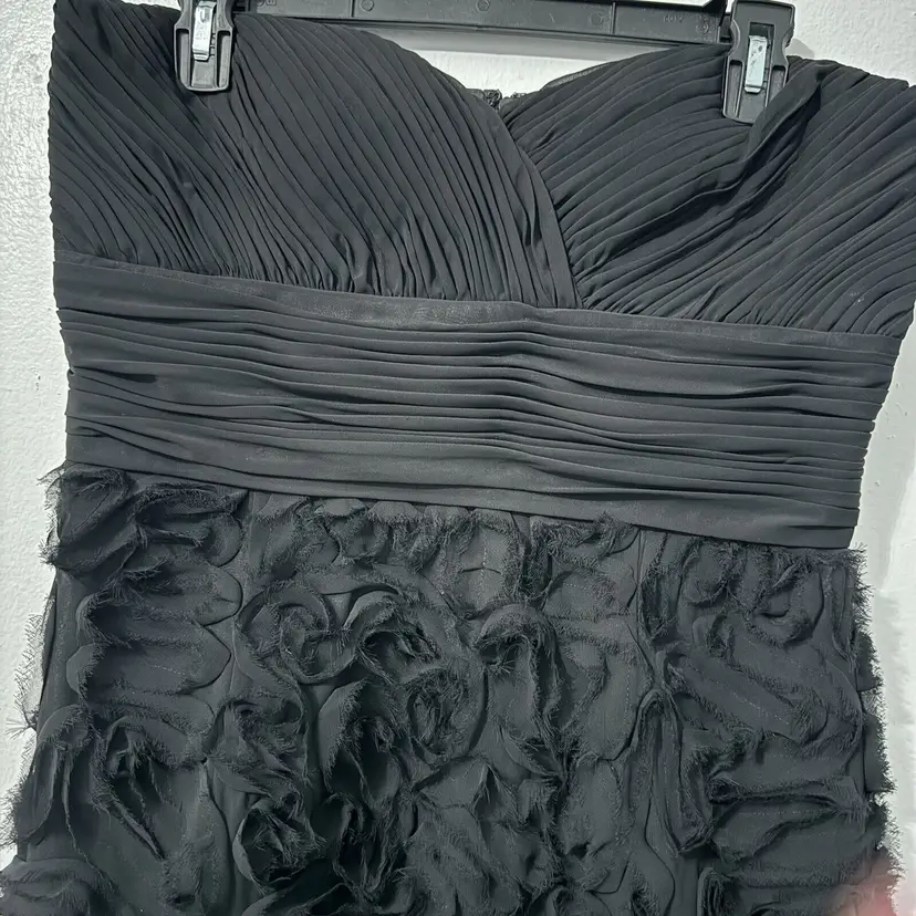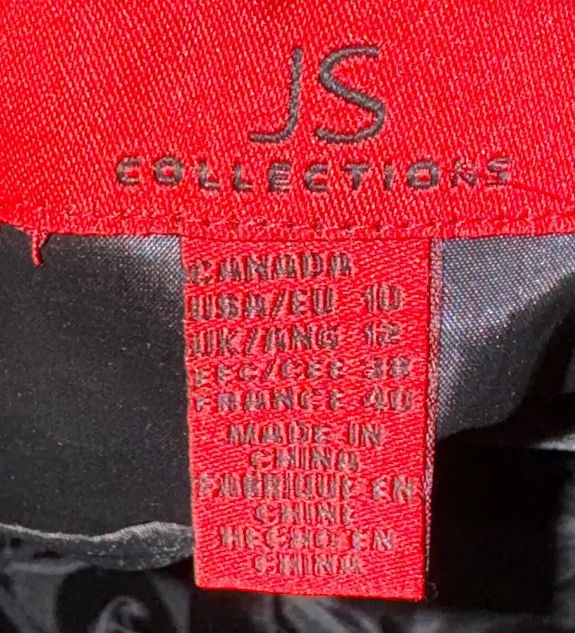 Pattern: Solid Sleeve Length: Sleeveless Character: Fairy Neckline: Sweetheart Closure: Zip Occasion: Formal, Party/Cocktail, Wedding Size: 10 Garment Care: Dry Clean Only Color: Black Sleeve Type: Strapless Material: Polyester Accents: Button, Rosettes, Sheer Overlay, Shirred, Strapless Vintage: No Dress Length: Knee Length Brand: JS Collections Size Type: Regular Department: Women Style: Sheath Season: Fall, Spring, Summer Handmade: No
