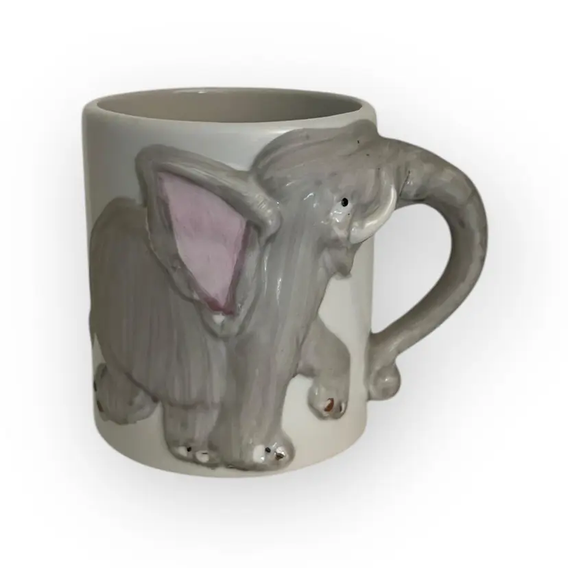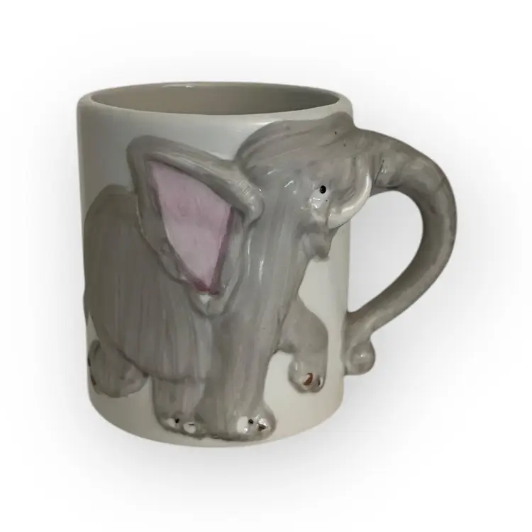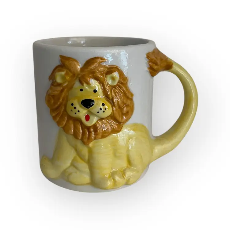 JSNY Lion & Elephant ceramic childrens mug 1970s Adorable kids mugs!! 3.25" tall.