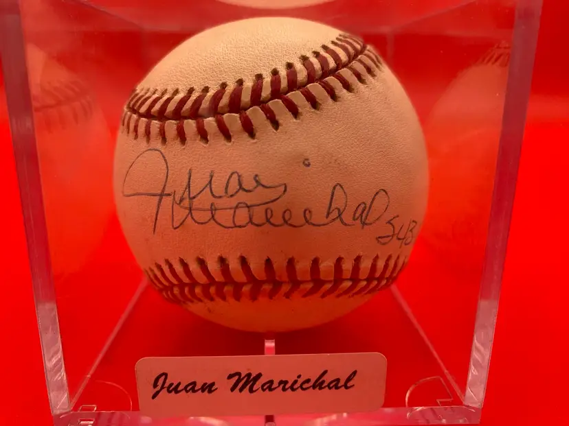 You are purchasing one Juan Marichal 'S43 Winner' Signed Rawlings Official National League Baseball. This Baseball includes one Hard Plastic Display Case and a Certificate of Authenticity by Blue Chip Sports. This Baseball is in overall good condition. See images for a closer look at each angle and areas of discoloration. No chips or cracks in the Case.