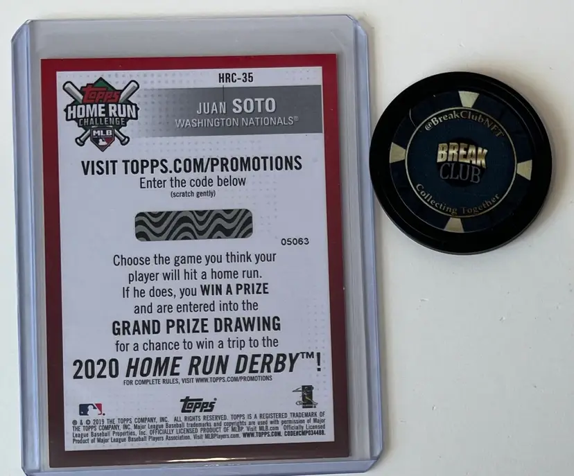 2019 Topps rare unscratched HRC card from Soto’s rookie cup second year set. $1 shipping via PWE (stacks with other listings)