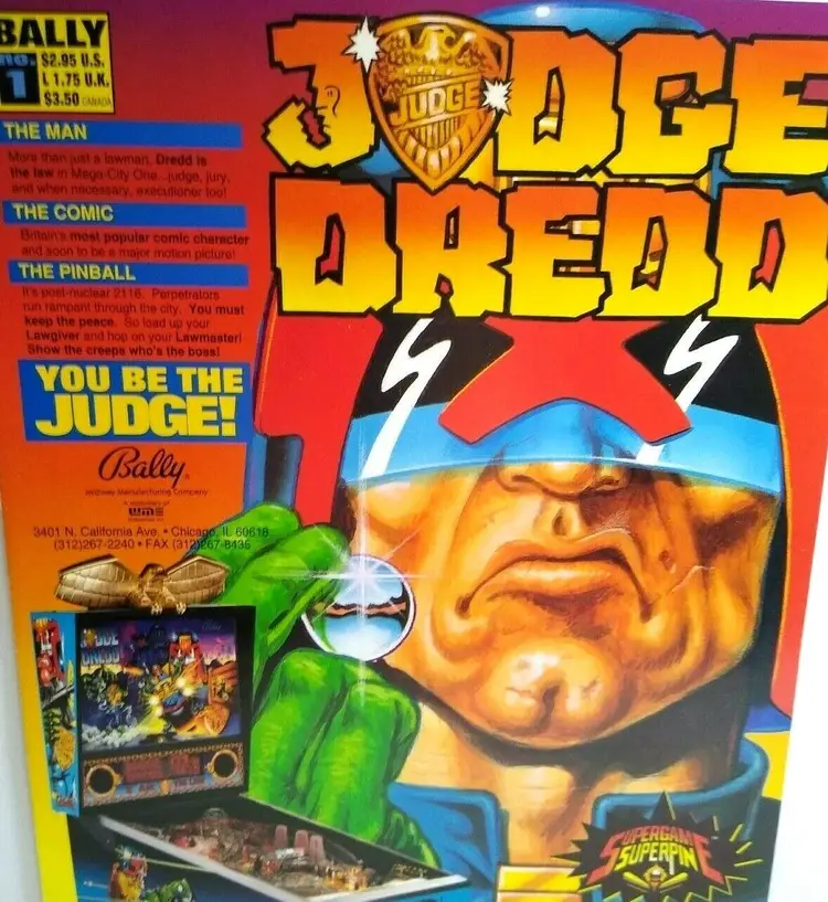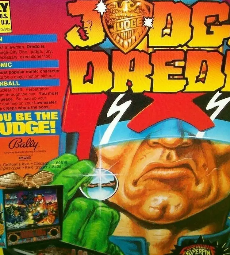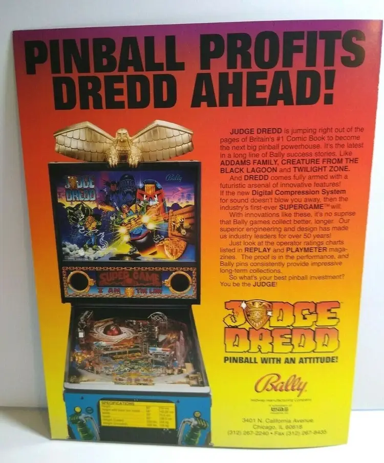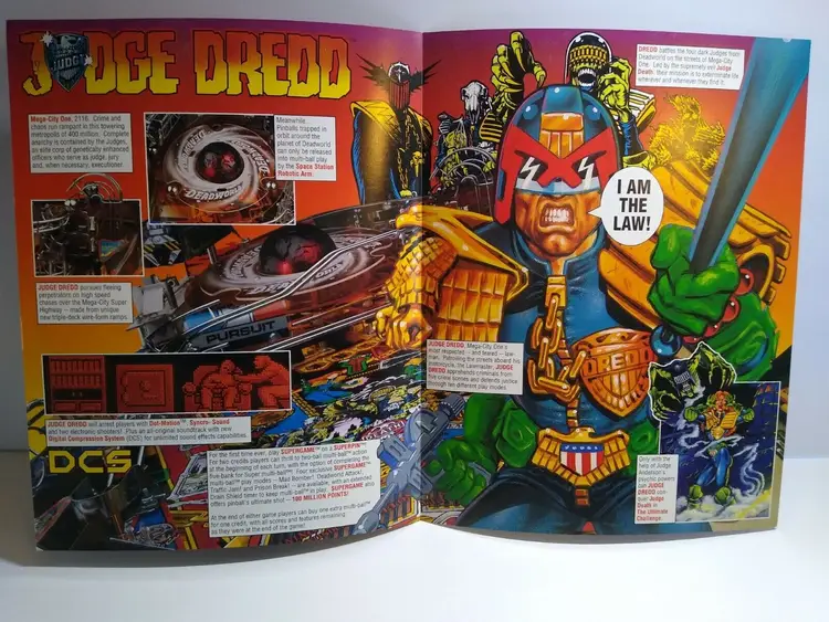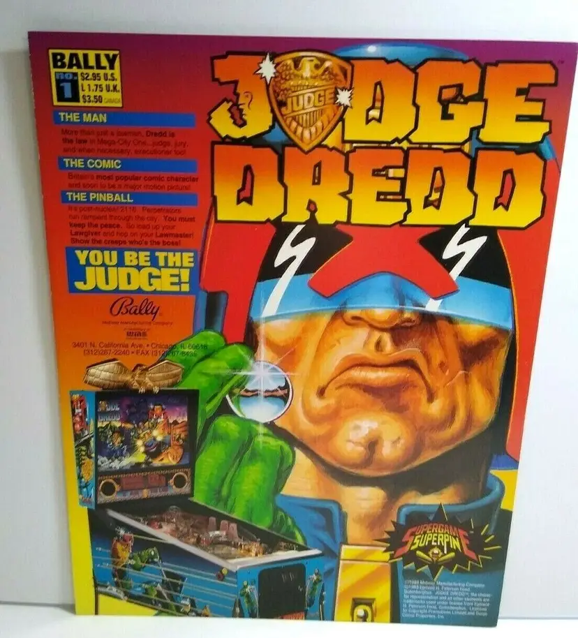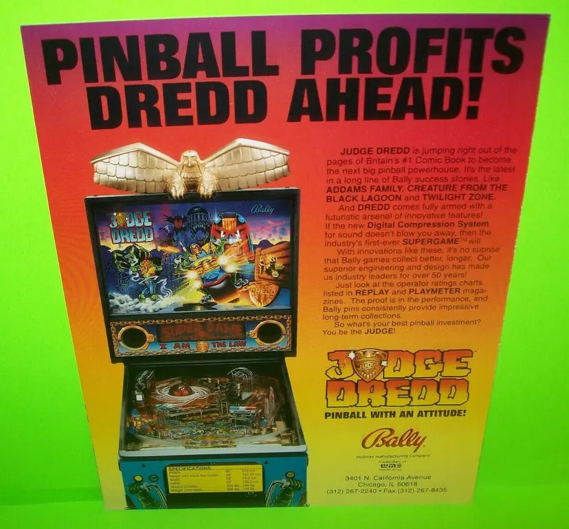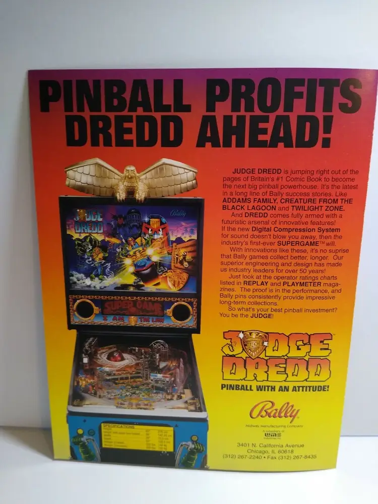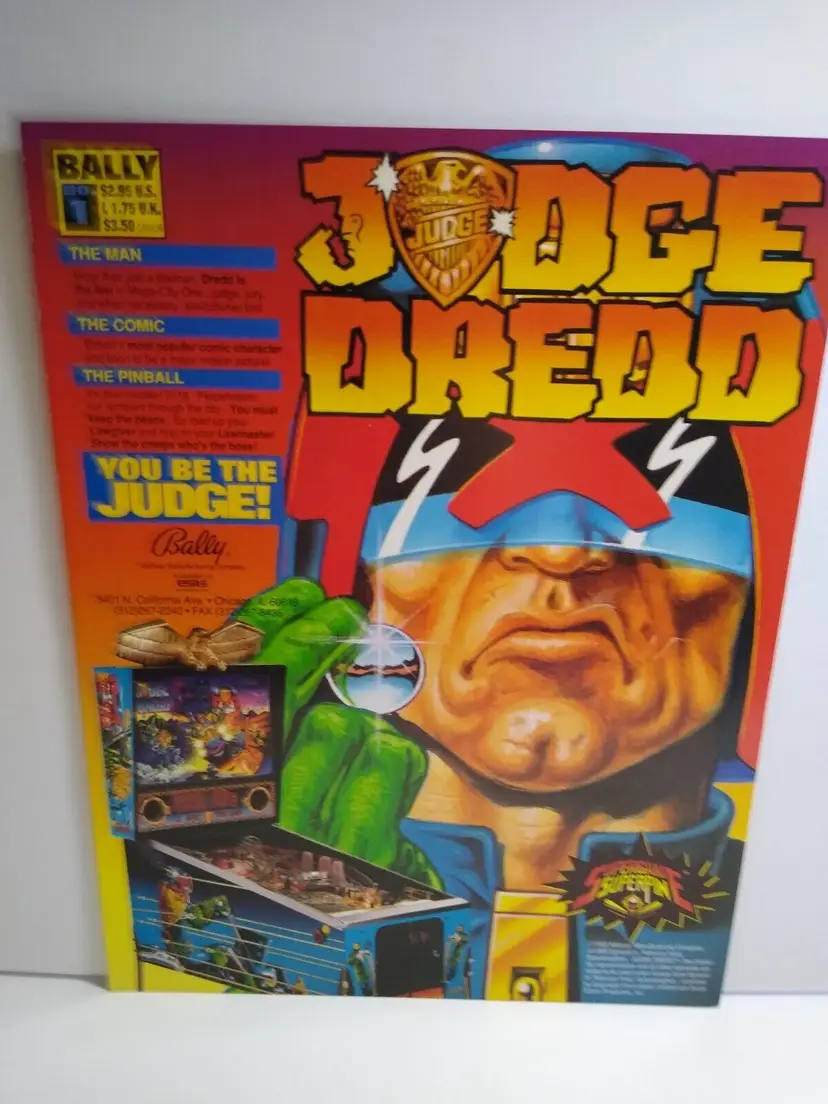 Original: Pinball Flyer Model: Judge Dredd Material: Paper Pinball: Flyer Modified Item: No Country/Region of Manufacture: United States Theme: Super Hero Year: 1993 Brand: Bally