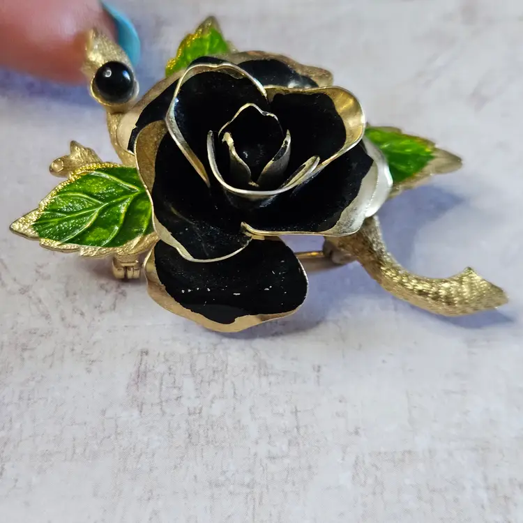 Black on one leaf shows minor wear. Marked Judy Lee. Approx 2.5"
