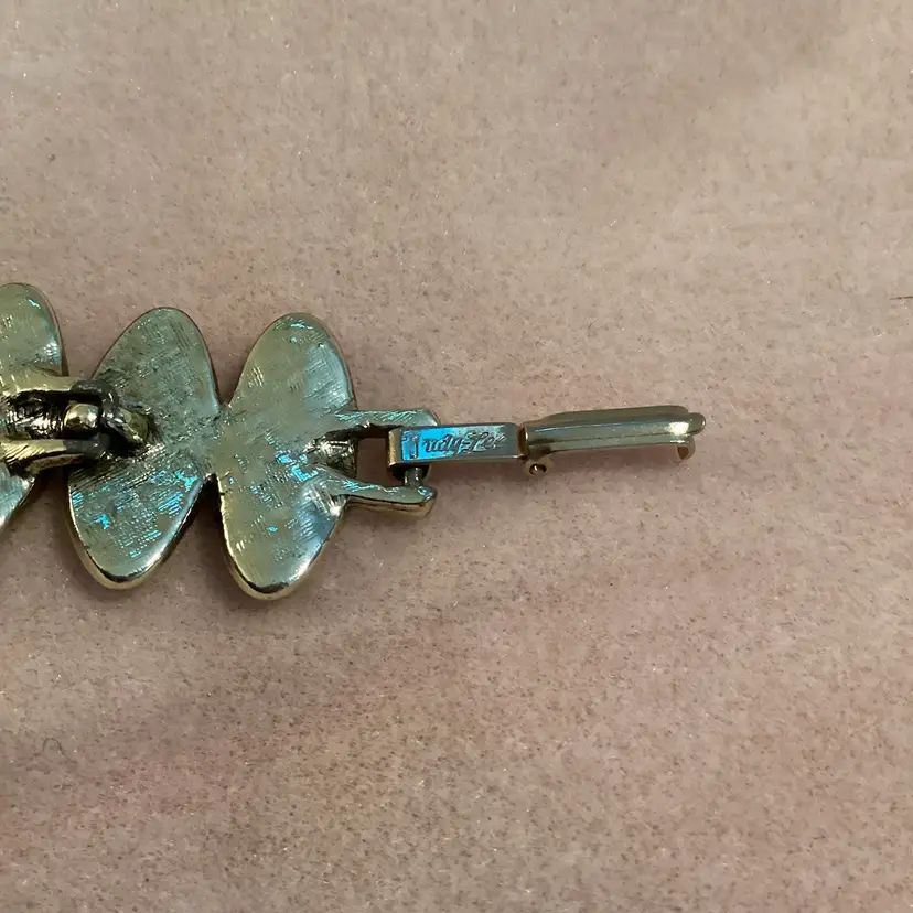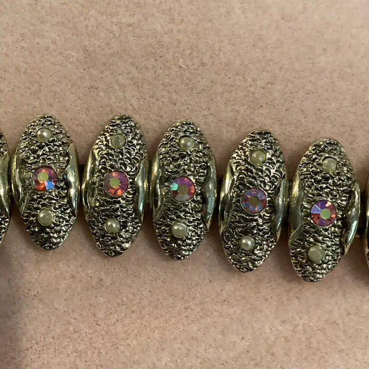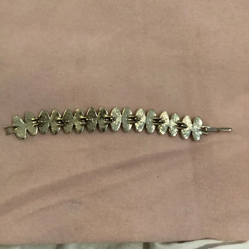 7.5” silvertone panel bracelet with fold over clasp Bits of tarnish where panels connect