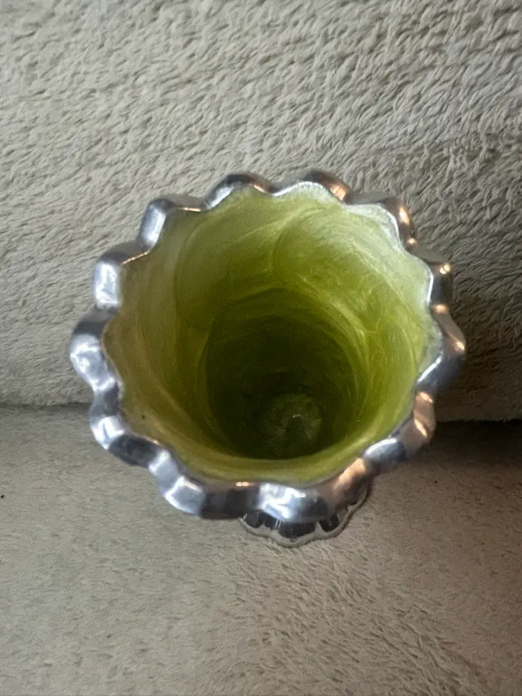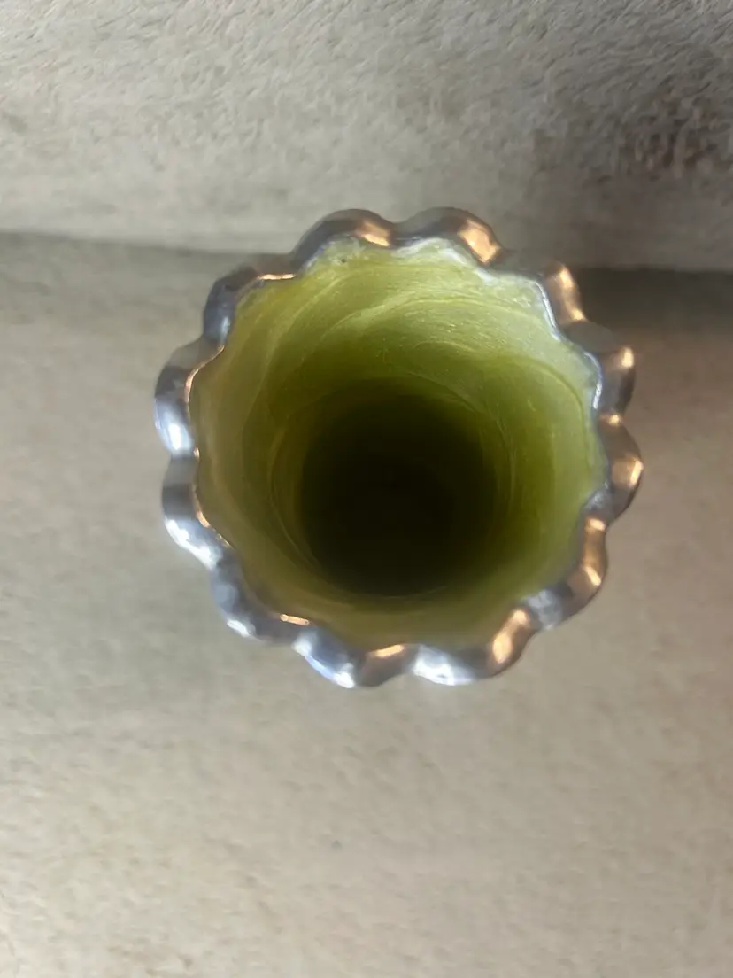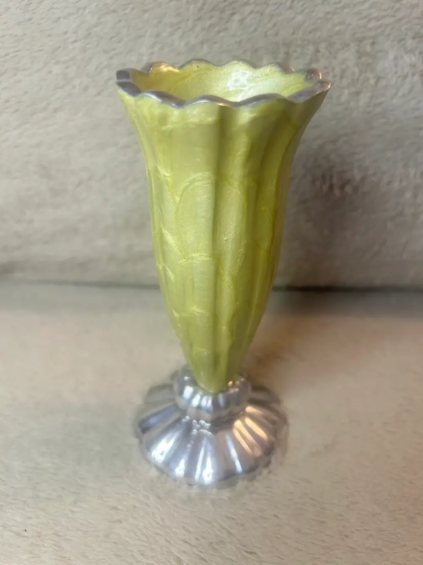It is a handmade, sand-cast aluminum vase.