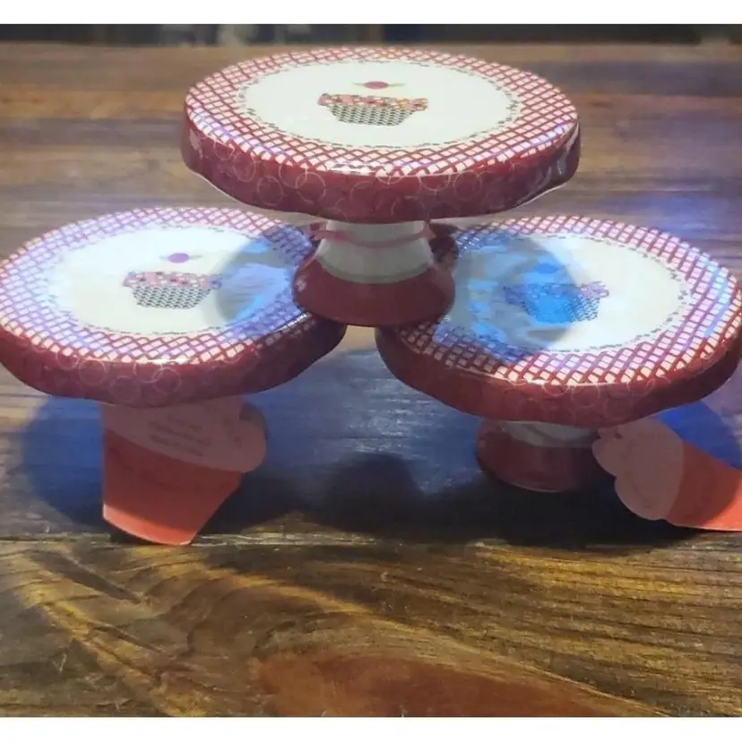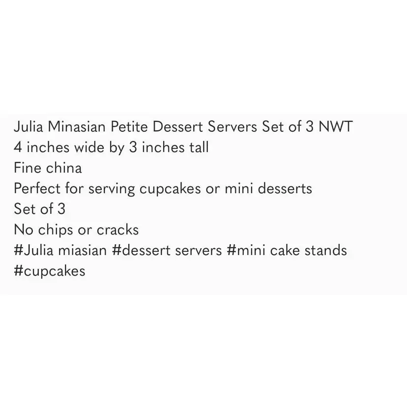 Julia Minasian Petite Dessert Servers Cupcake Stands Set of 3 New No chips or cracks Features cupcake design