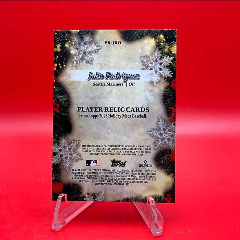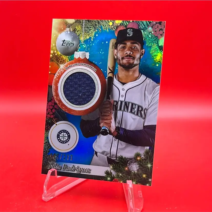 Julio Rodriguez 2025 Topps Holiday Mega Blue Refractor Player Relic 78/299 Seattle Mariners