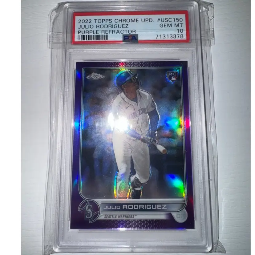 This includes 1 card: Julio Rodriguez 2022 Topps Chrome Purple Rc PSA 10
