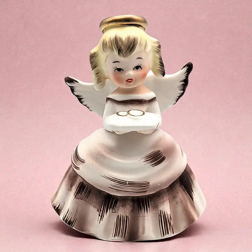 She's holding a ring pillow making her the perfect gift or collectable piece!