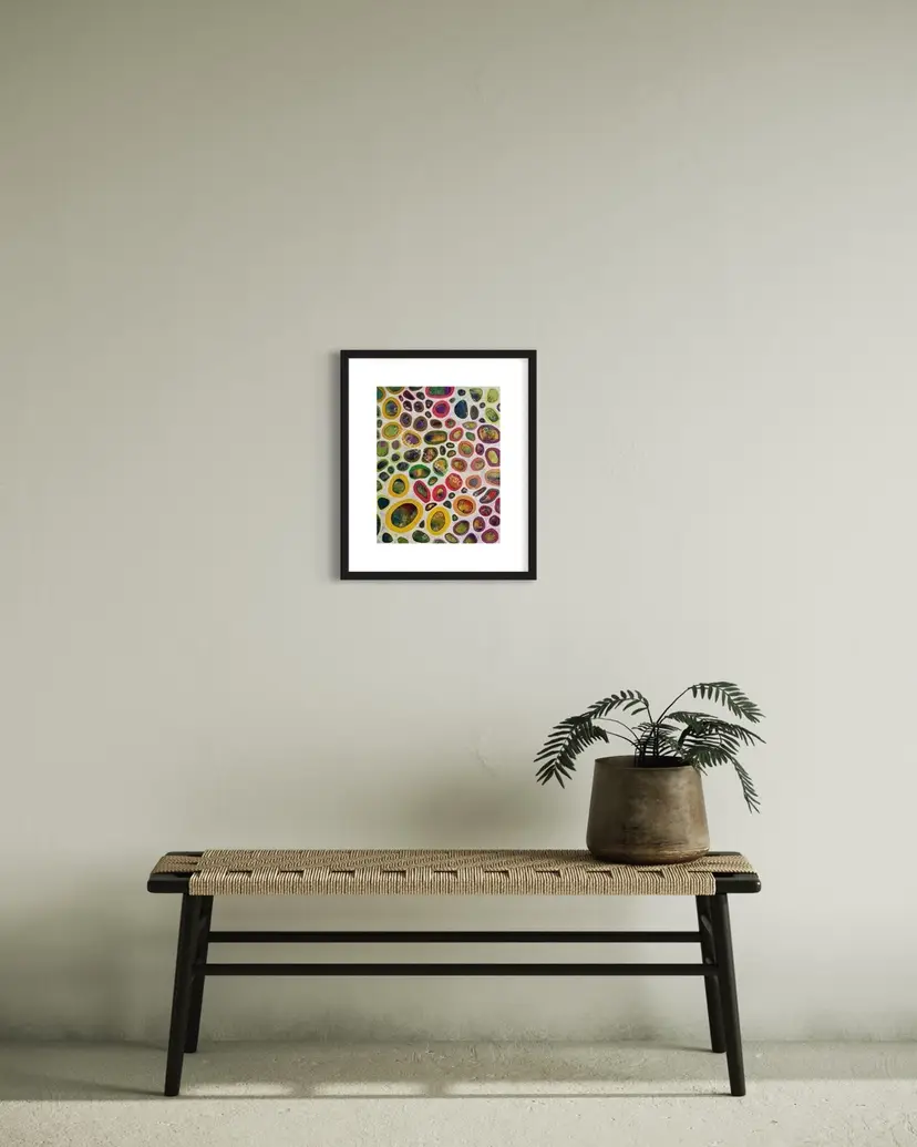 • 14” x 11” acrylic and mixed media original painting on Bristol Board Paper, sealed and protected with two layers of archival varnish. • Frame & mat shown not included. • Ships flat; ready for you to take to your local framer to customize/coordinate with the decor in your space. •All original paintings come with a signed Certificate of Authenticity.