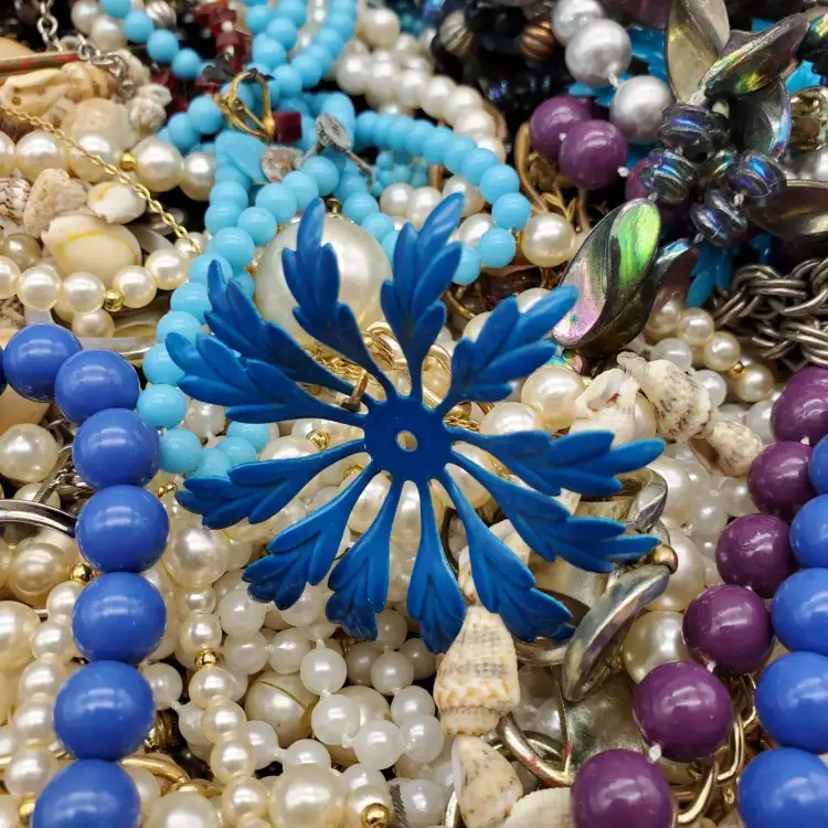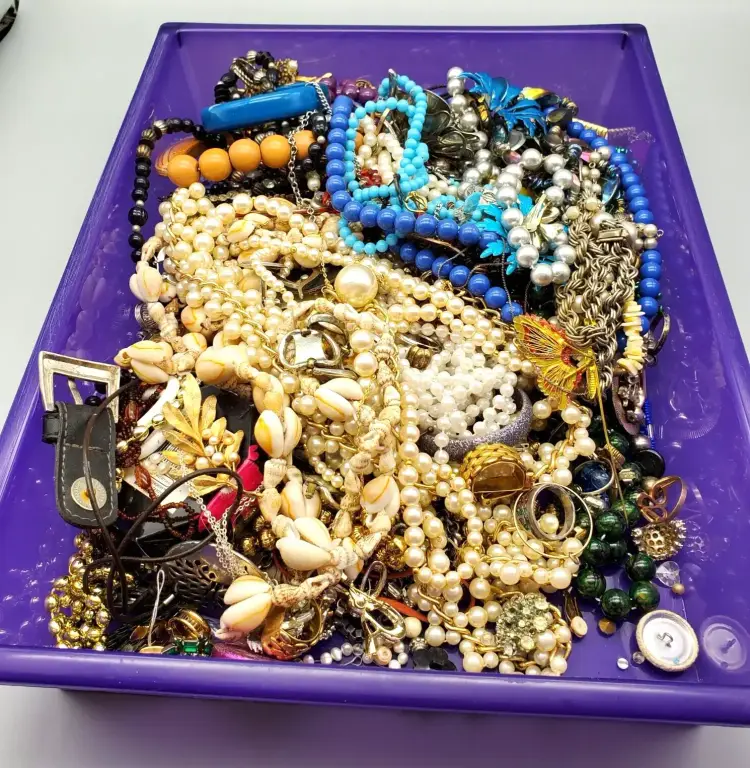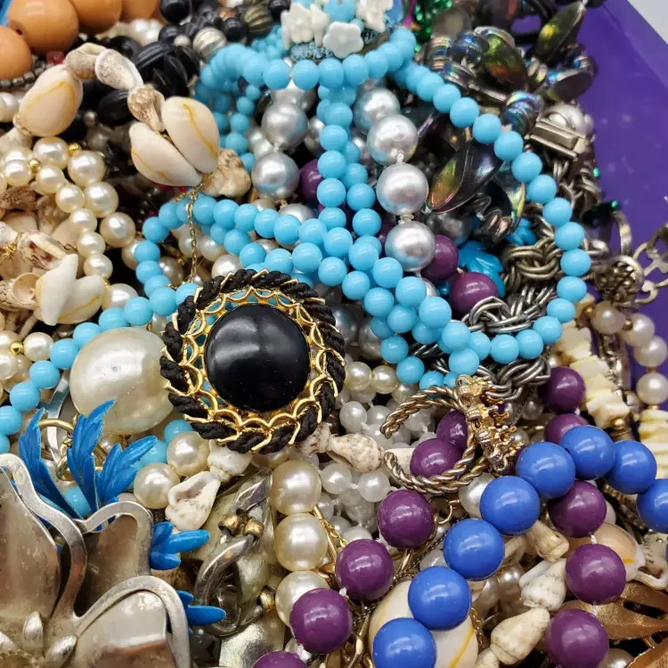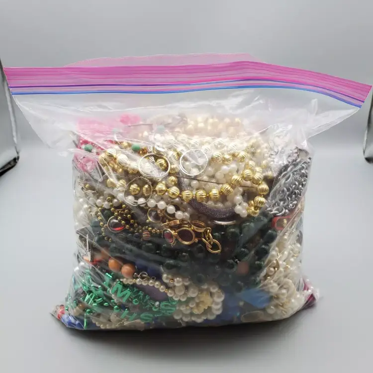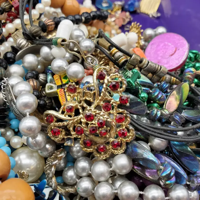 -Items: 5 1/2 Pounds of Damaged Jewelry -Condition: This is the exact lot you will receive as you see in photos-Missing Stones, Broken, Few Wearable-Great for Projects or Repair! -Accents/Features: There are Earrings, Necklaces, Bracelets and Misc Jewelry-Rhinestones Missing, Broken Pieces, Beads, Necklaces, Brooches, Earrings, Bracelets, Barrettes, Crosses, Some wearable, Rings, Baubles, Shoe Clips And More