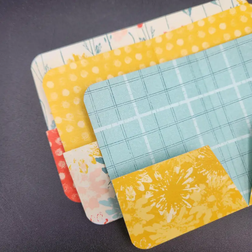 I've done all the measuring and cutting so you can focus on the fun. Distress and decorate to fit your journal. Made with Stampin' Up! double sided paper. 3"x4"