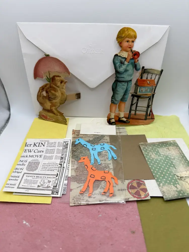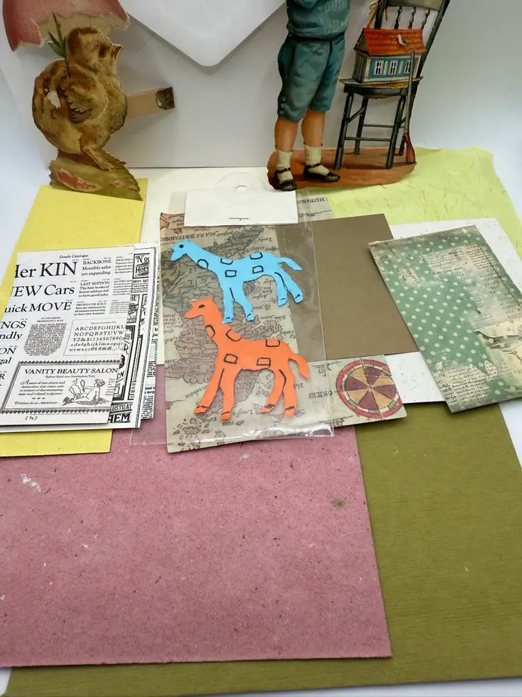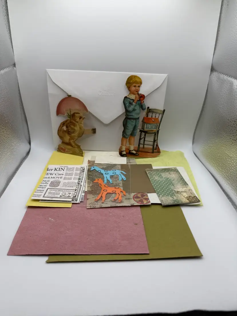 Junk journal Kit includes 2 antique card parts Various papers