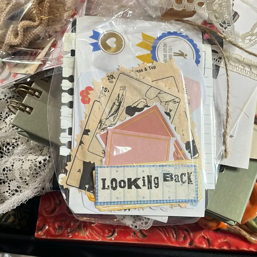 Journal included & Ephemera Buttons Craft jewelry Ribbon Stickers Etc.