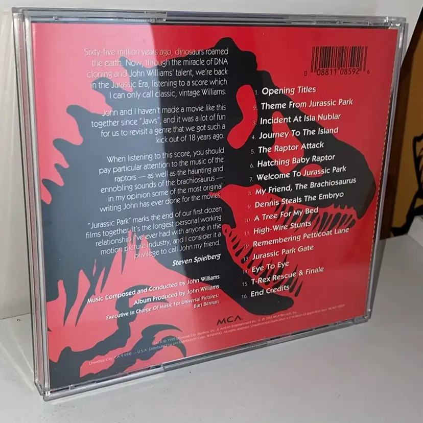 Opening Titles Theme From Jurassic Park Incident At Isla Nublar 4. Journey To The Island 5. The Raptor Attack 6. Hatching Baby Raptor 7. Welcome To Jurassic Park 8. My Friend, The Brachiosaurus 2. Denhis Steals The Embryo 10. A Tree For My Bed 11. High-Wire Stunts 12. Remembering Petticoat Lane
