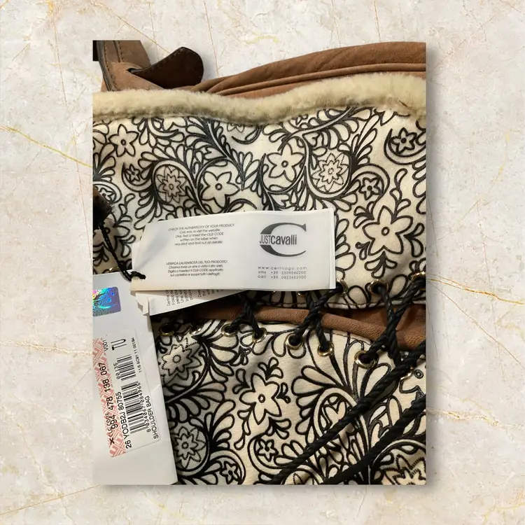 Crafted from premium leather, this Just Cavalli crossbody bag boasts a bold multicolor exterior that's sure to add a pop of color to any outfit. The whipstitch lace detail gives it a touch of elegance, making it a versatile accessory for both day-to-night wear. The bag features a secure zipper closure to keep your items safe while on the go. Its compact design is perfect for carrying essentials, and the adjustable strap ensures it can be worn comfortably across the body. A stylish addition to any fashion-forward woman's collection.