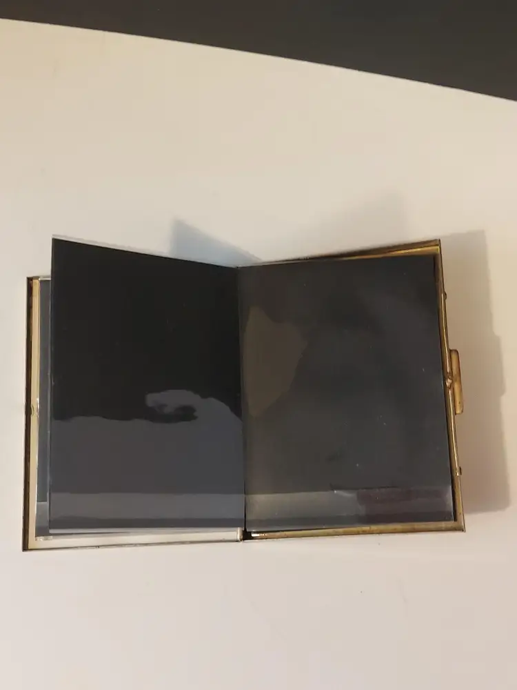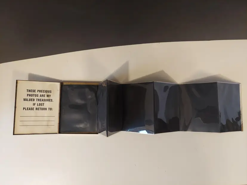 This sweet little brag book is the perfect place to keep all of your favorite photos. It measures approximately 3×4 inches, the perfect size for carrying in your purse or pocket. This piece is in good used condition, with some scratches, please see photos.
