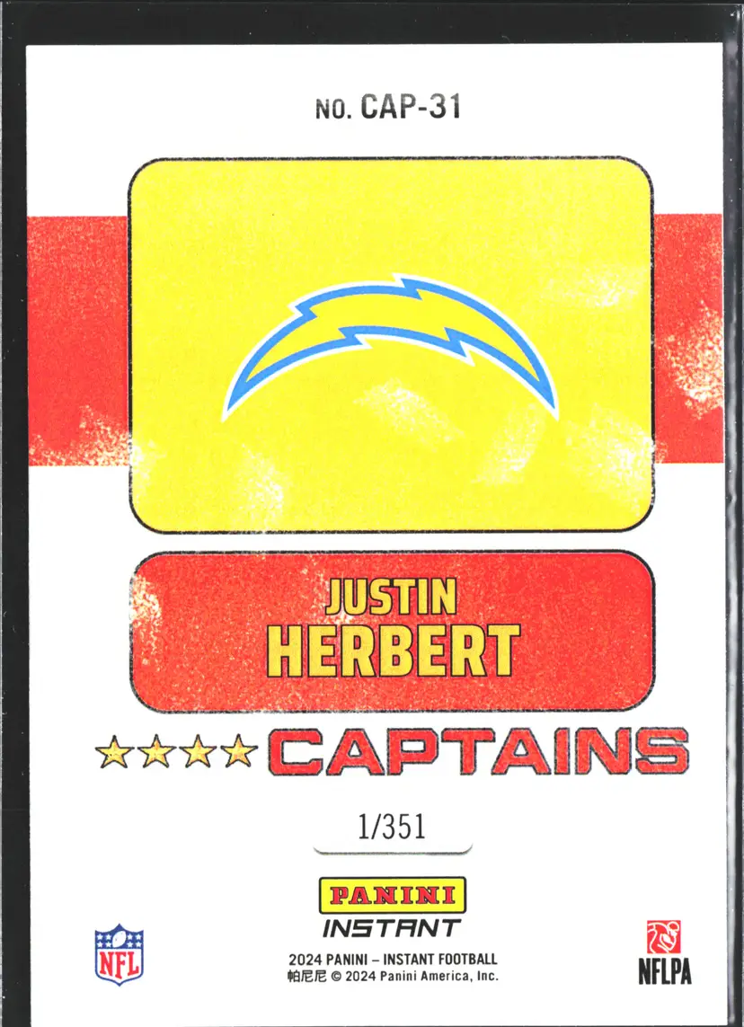 1st time buyer? Get $5 Off with code DISTRICT5 at checkout! Card as shown. All cards $20 and under ship PWE via lettertrackpro [https://www.letter-track.com/registerap.asp?AFID=8757] Sport: Football Set: 2024 Panini Instant NFL Manufacturer: Panini Features: Limited Edition, Serial Numbered Season: 2024 Player/Athlete: Justin Herbert Type: Sports Trading Card Autographed: No Signed By: Justin Herbert Year Manufactured: 2024 Vintage: No Graded: No Team: Los Angeles Chargers League: National Football League (NFL) Material: Card Stock Original/Licensed Reprint: Original Country/Region of Manufacture: United States