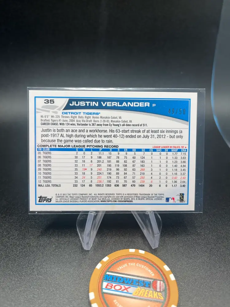 2013 Topps Justin Verlander Mothers Day pink #49/50. Detroit tigers card. Now with the Houston Astros