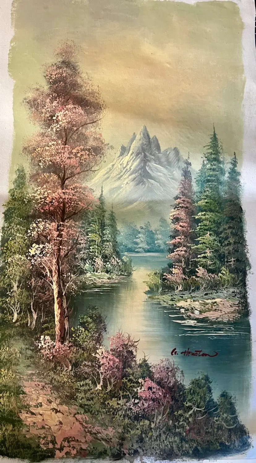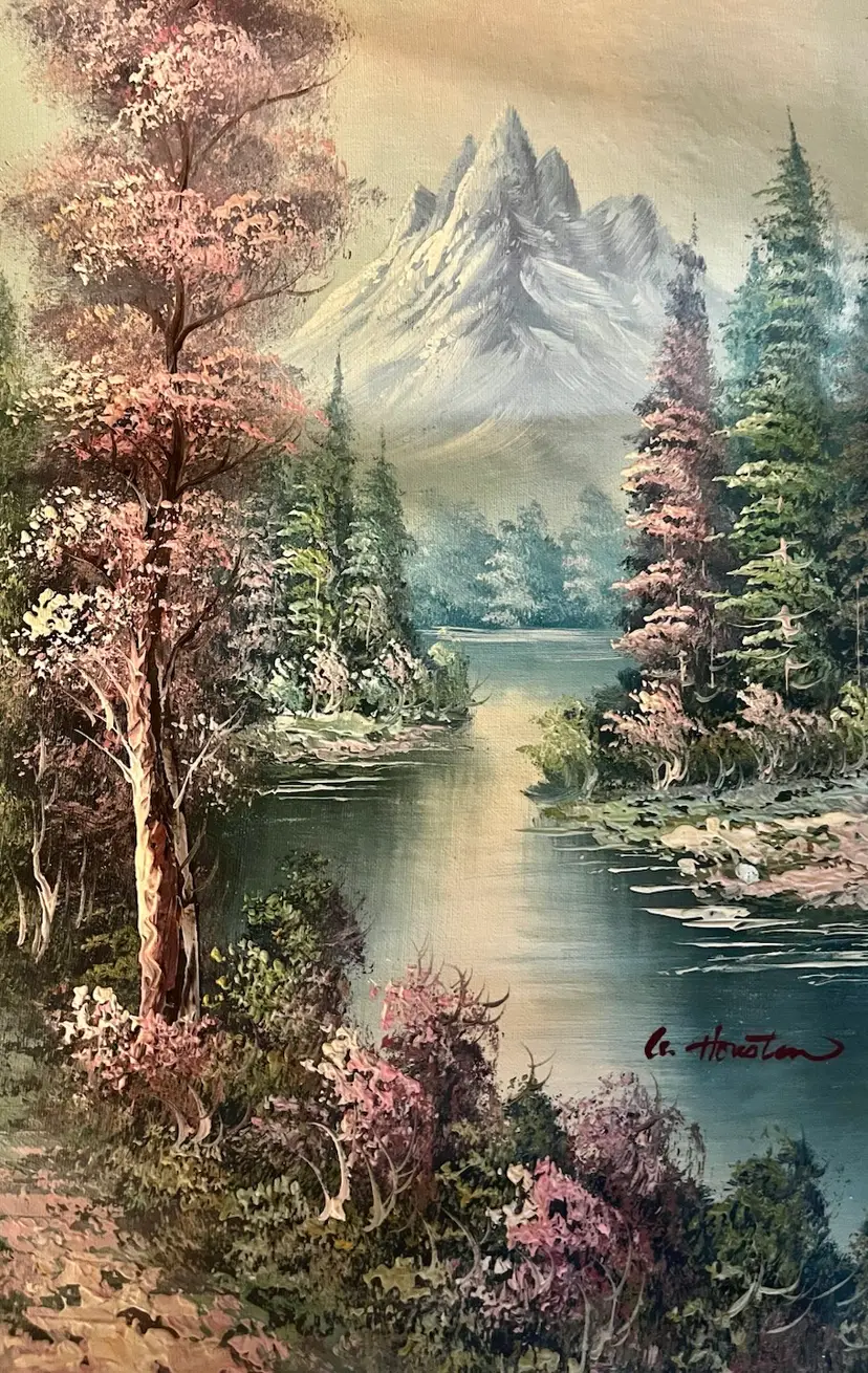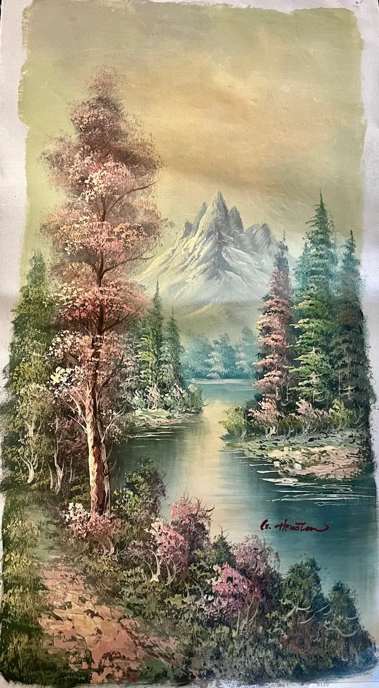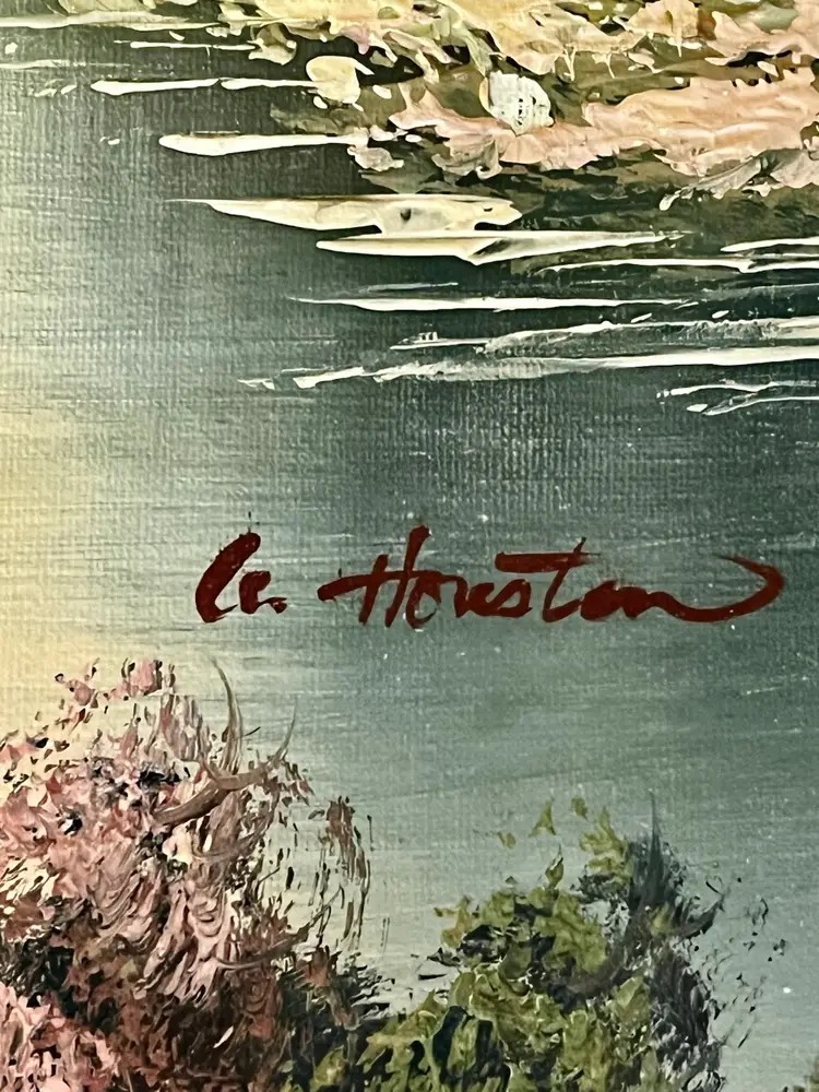 A Vintage hand-painted oil on canvas. Original artist signed by K. Houston.