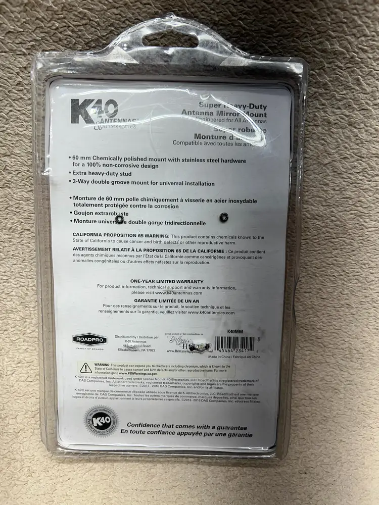 Enhance your mobile radio communication setup with the K40 3-Way Double Groove Stainless Steel CB Antenna Mirror Mount. Designed to provide a stable and secure platform for your antenna, this mount is an essential accessory for any communication enthusiast. The K40MM model is crafted with an extra heavy duty stud and boasts a lifetime limited warranty, ensuring reliability and peace of mind with your investment.