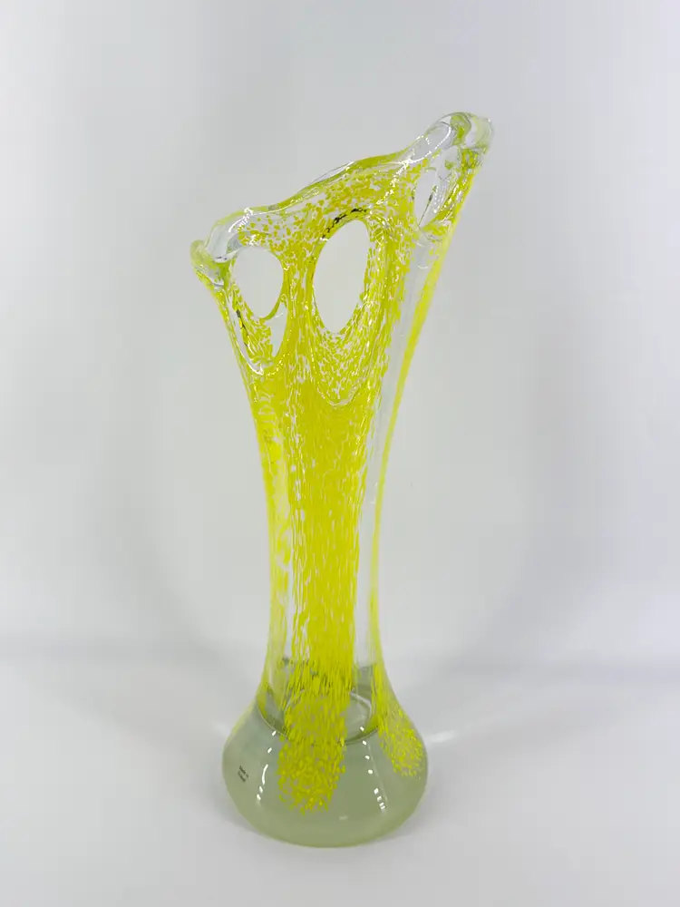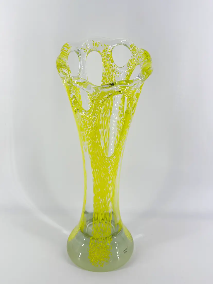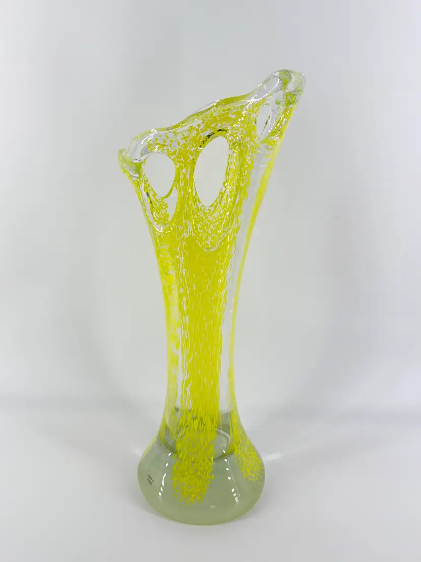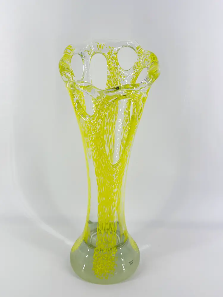 It is 15" tall and measures 5" in diameter at its widest. It is in excellent condition. There are no cracks, breaks, chips or repairs. (See photos).