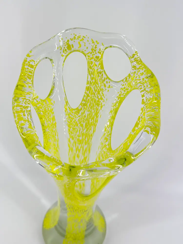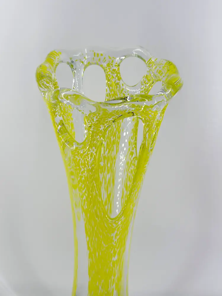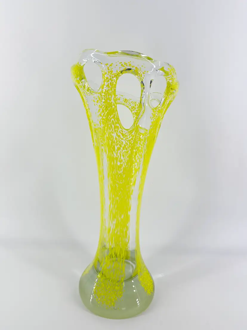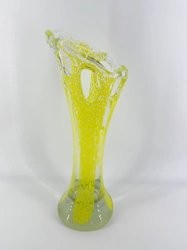 It is 15" tall and measures 5" in diameter at its widest. It is in excellent condition. There are no cracks, breaks, chips or repairs. (See photos).