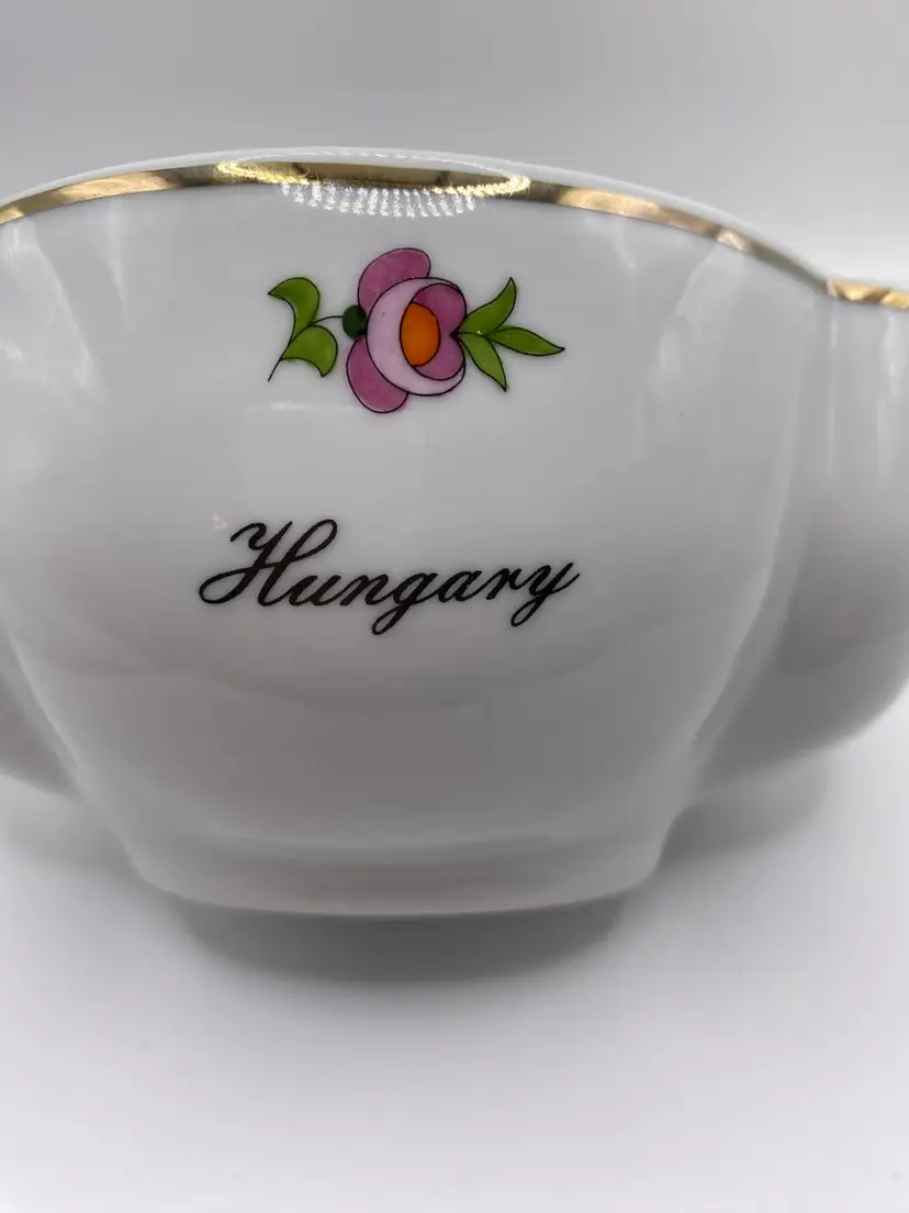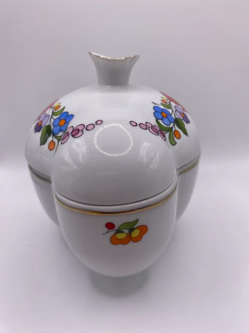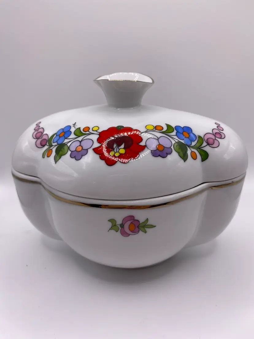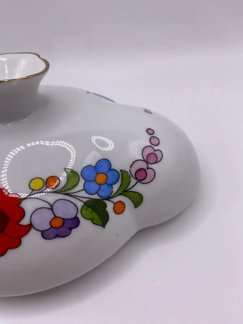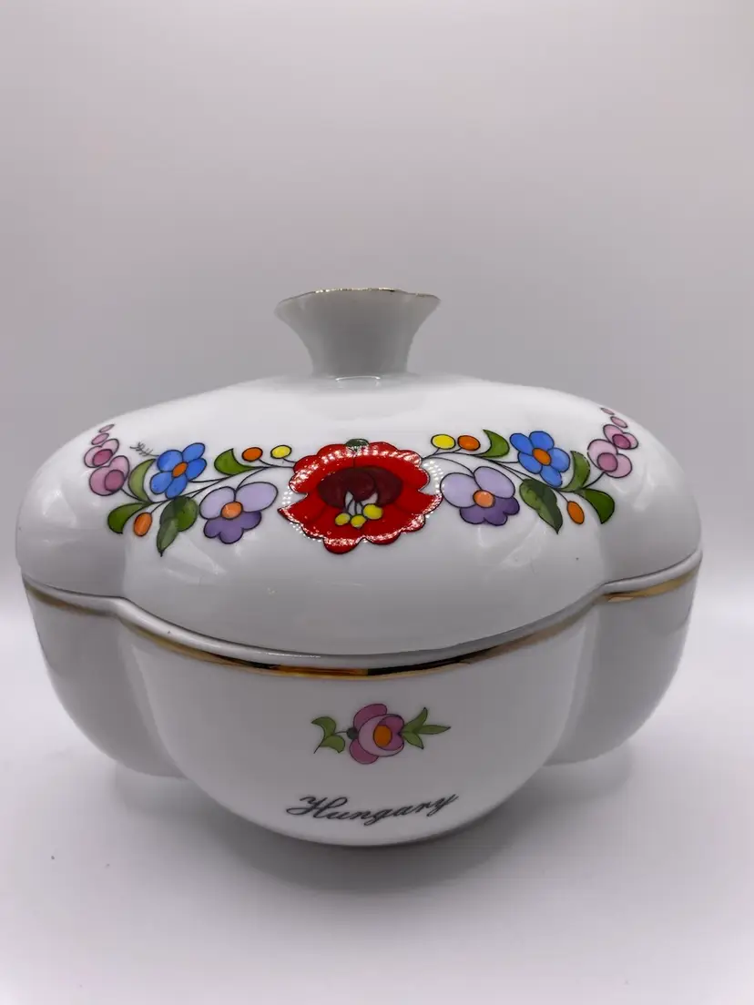 Dish is approximately 5-1/2” tall x 6-1/2” long x 4-1/2” wide. It’s in good condition. No chips or cracks. There is some very minor paint loss. See photos for details.