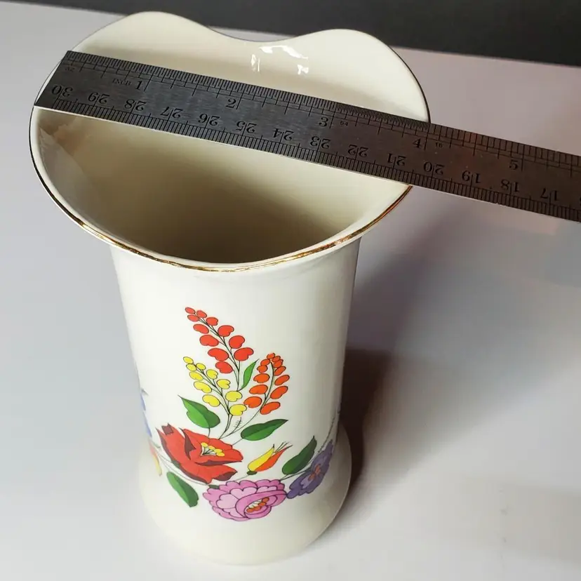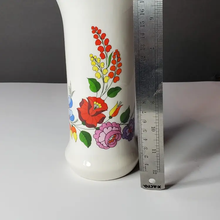 Kalocsa porcelain vase, hand painted with floral pattern.