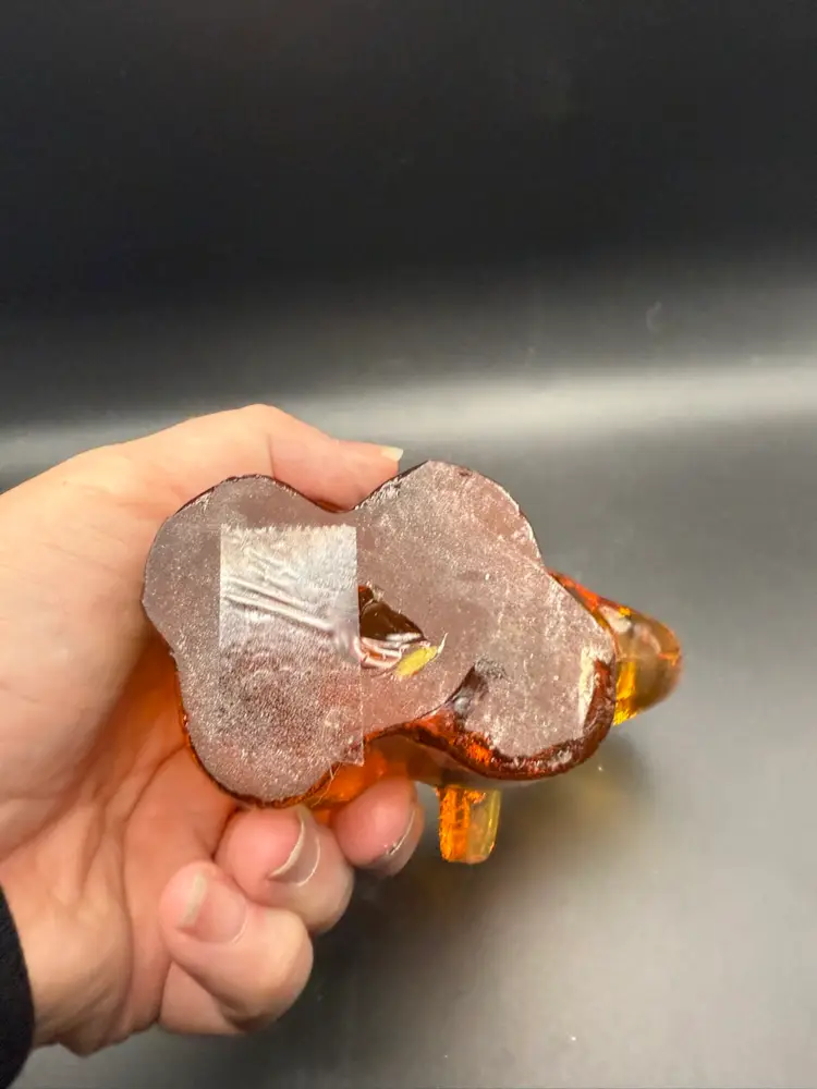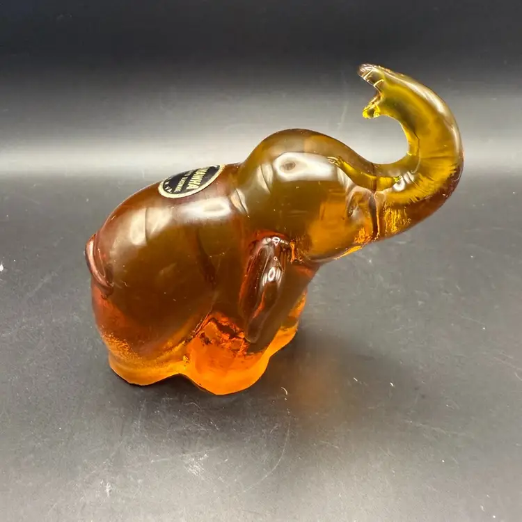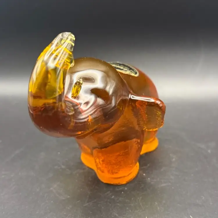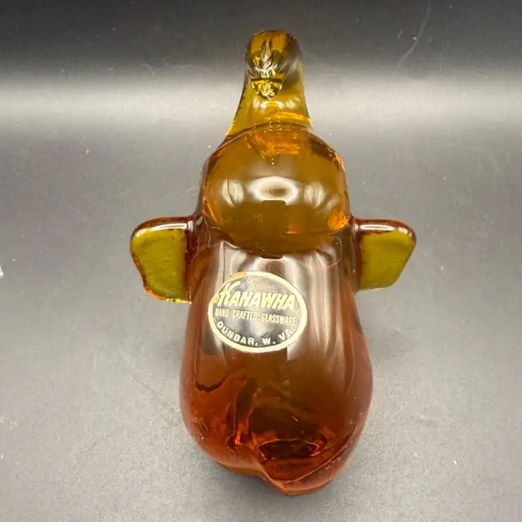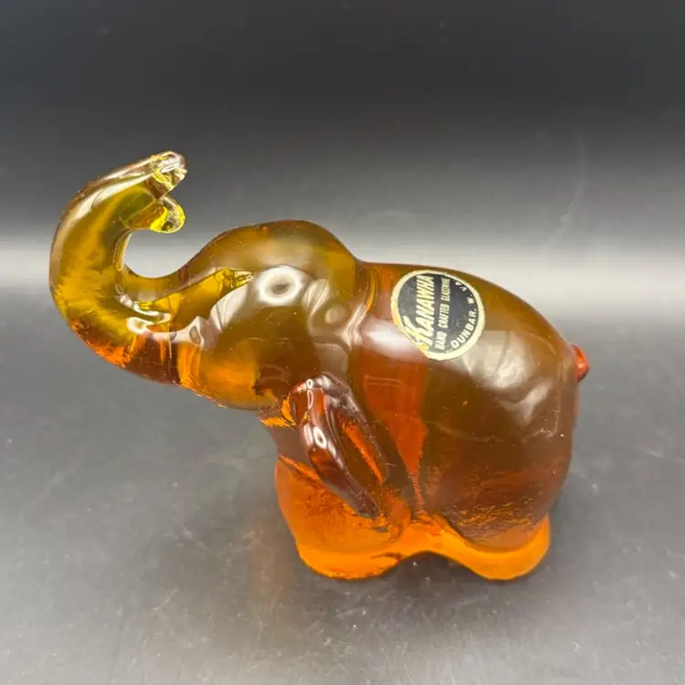 Figural glass animals, such as this elephant, were popular decorative items throughout the mid-20th century. They were often made in various colors and sizes, and pieces from well-known glass companies like Kanawha are particularly desirable. The hand-crafted nature of these items adds to their appeal and collectible value.