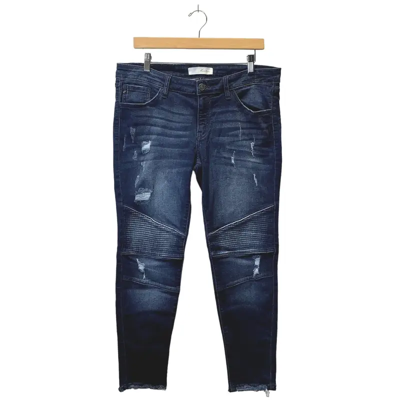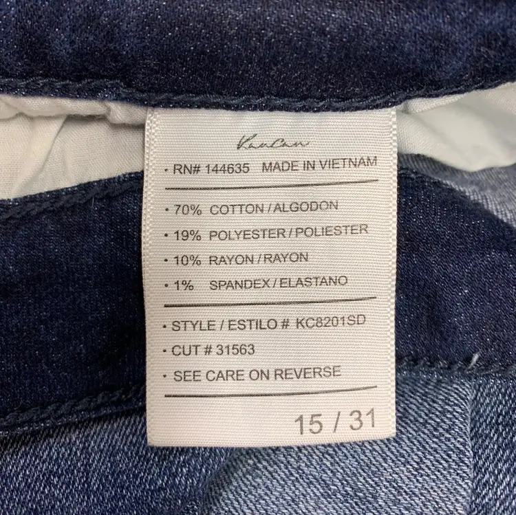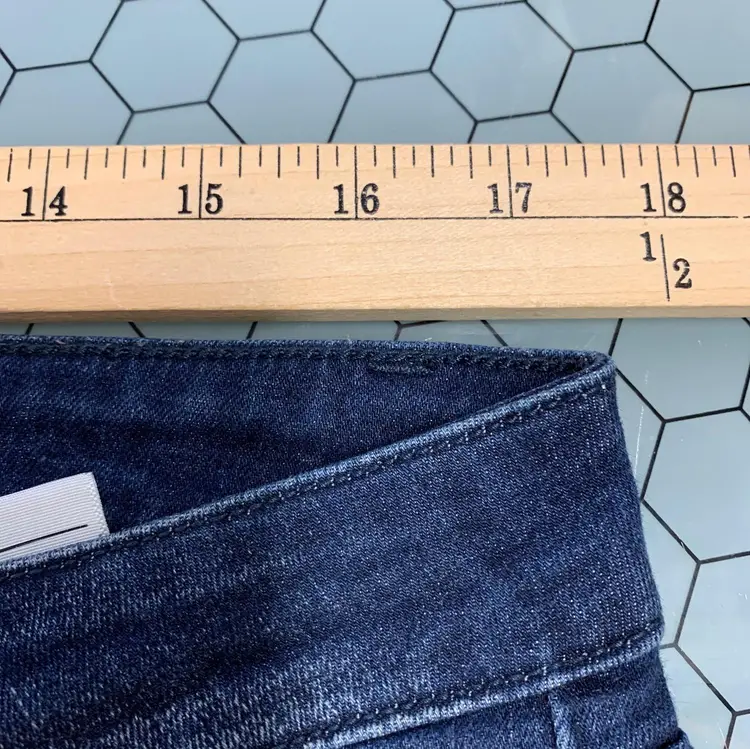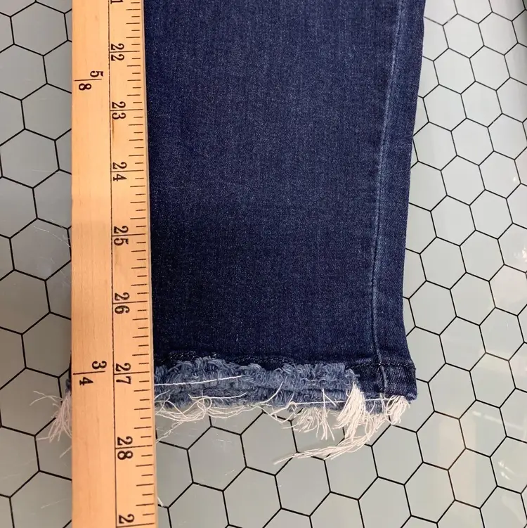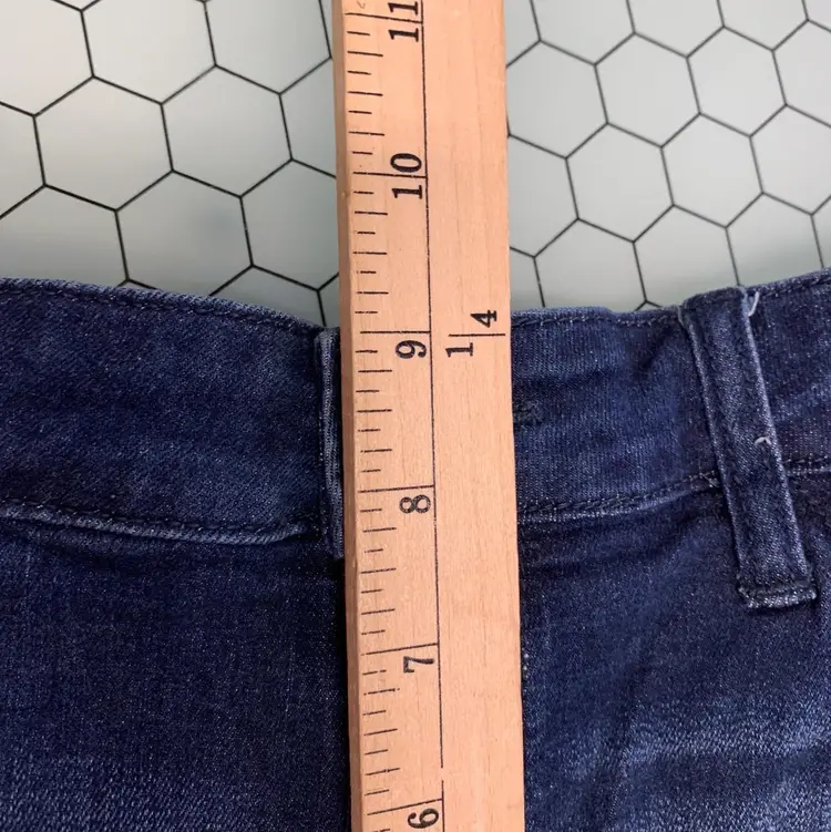 Preowned Waist approx. 35 inches Inseam approx. 27.5 inches Rise approx. 9 inches Leg opening approx. 5.95 inches 70% Cotton / 19% Polyester / 10% Rayon / 1% Spandex