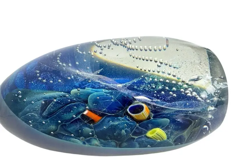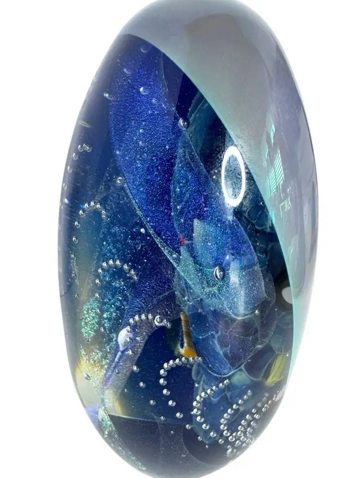 The second photo features the paperweight on a led light stand to showcase the art and details at is best. Not included with purchase.