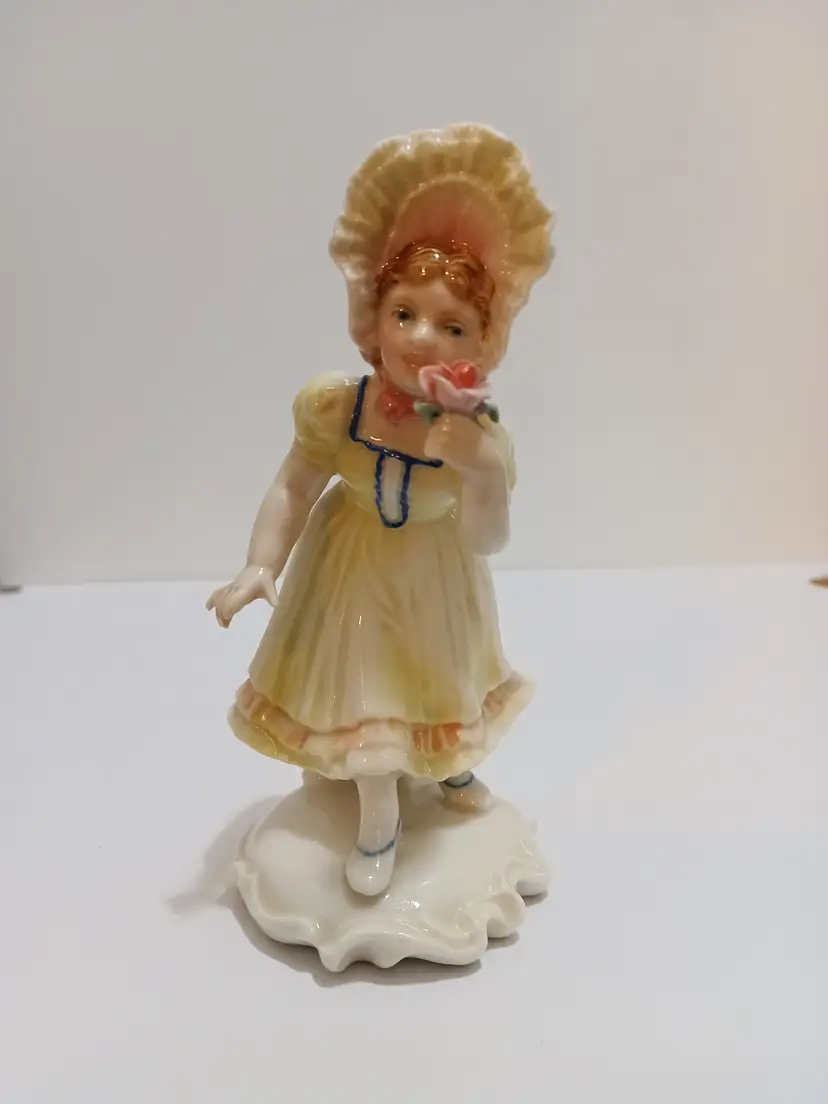 Karl Ens, Volkstedt Figurine of Girl in a Bonnet Holding a Single Flower; Adorable! Excellent Condition! Marked and Numbered! No Chips, Crazing or Cracks. 5.25" T x 3"W; HTF