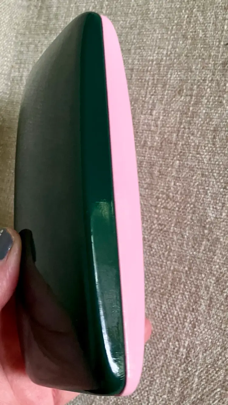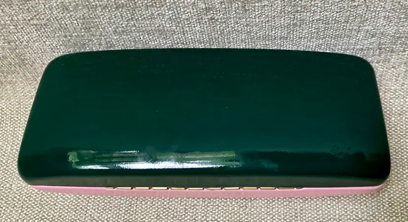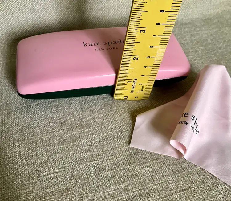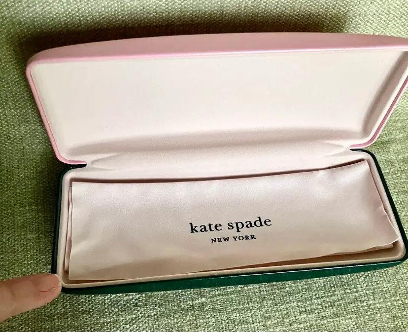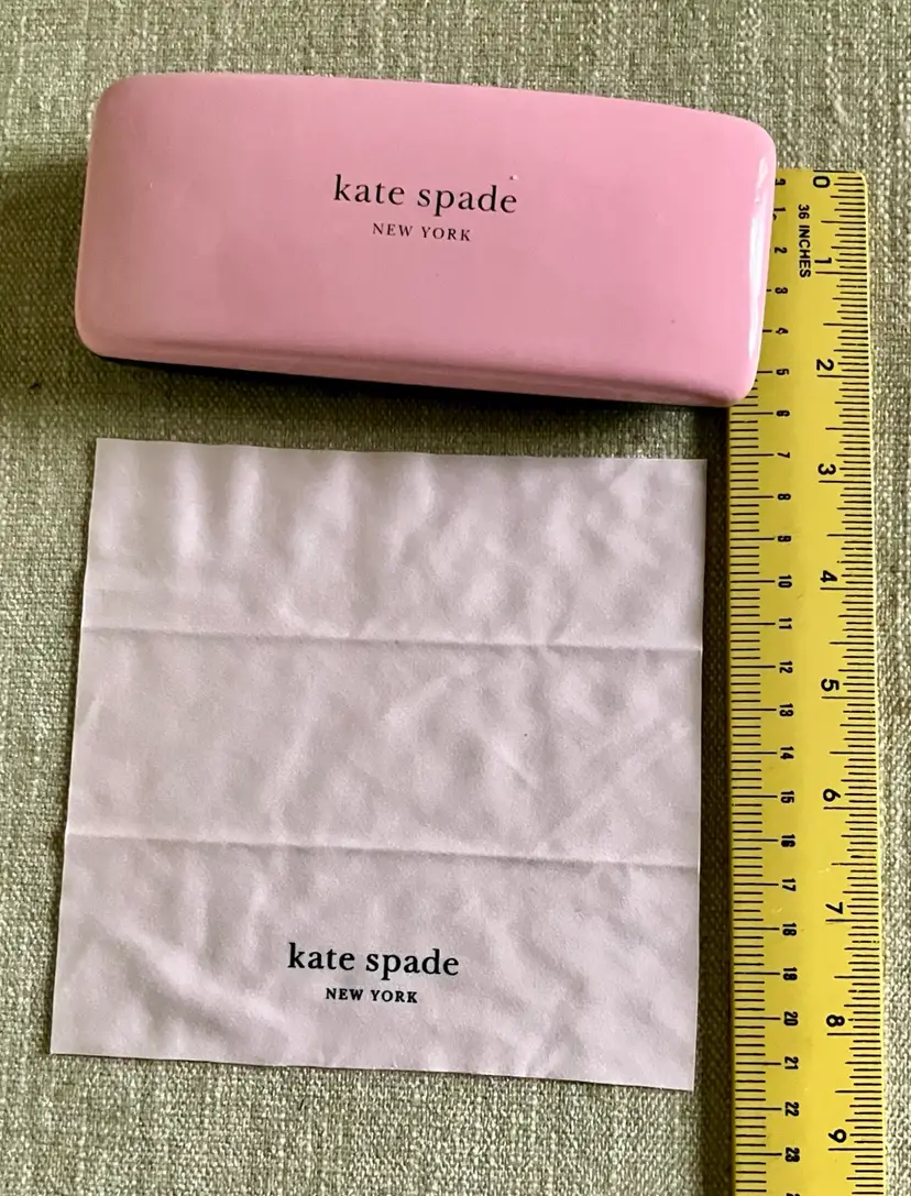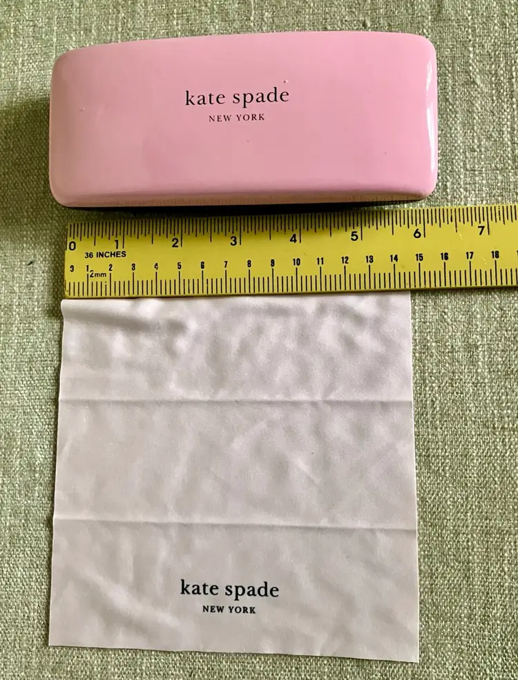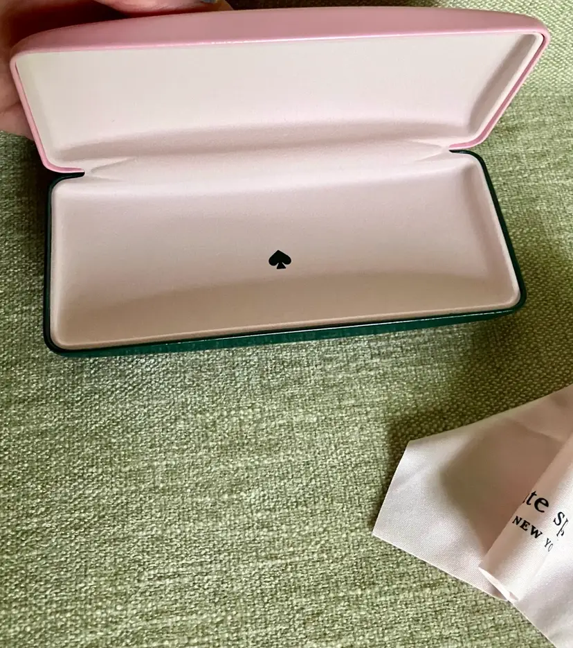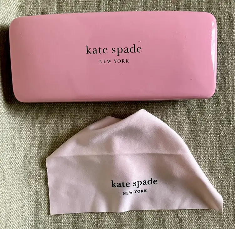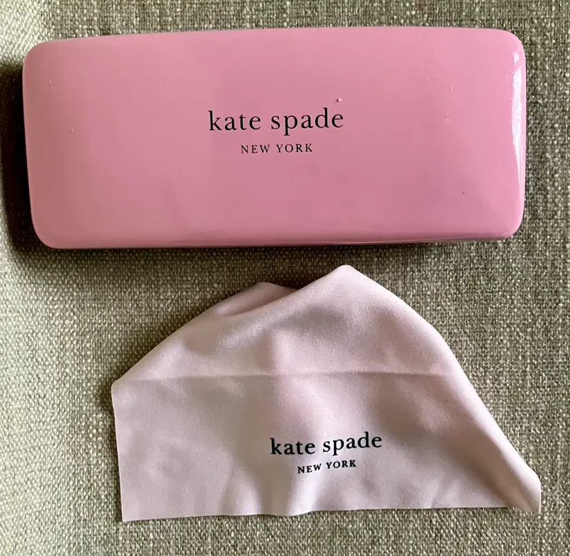 Kate Spade Eyeglass Case with Cleaning Cloth Soft Pink With Dark Green Bottom.