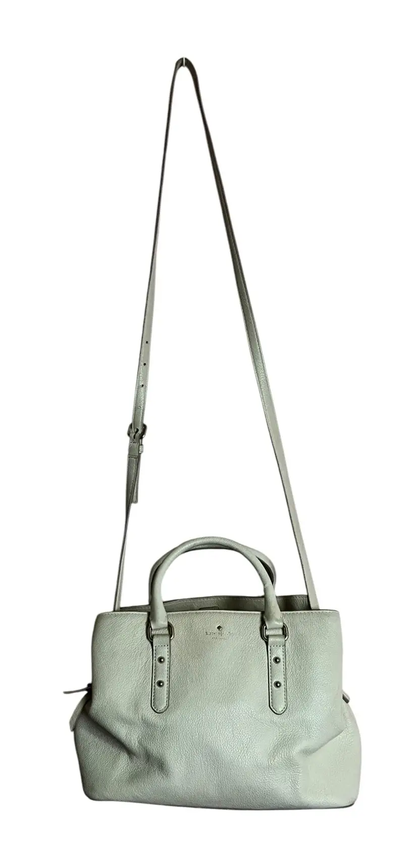 The bag features a magnetic snap closure and a 24" strap drop, allowing for easy access and comfortable carrying. The rectangular shape and Kate Spade New York branding add a touch of elegance to this top handle bag. Perfect for any fashion-forward woman, this satchel is sure to become a favorite in your collection.