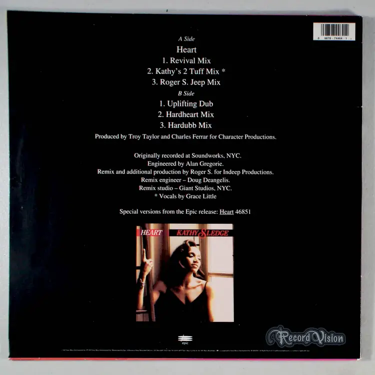 Heart, by Kathy Sledge, was a single from the album of the same name that reached No. 16 on the Dance Club Songs Chart. Sledge is best known as the youngest and founding member of Sister Sledge, an American vocal group which is made up of her sisters that formed in 1971. After achieving success beginning the late–1970s thru the mid–1980s with Sister Sledge, Sledge embarked on her solo career in 1989. She has had several hits on the International Pop and Hot Dance Music/Club Play chart, including Take Me Back to Love Again, which hit No. 1 in 1992.
