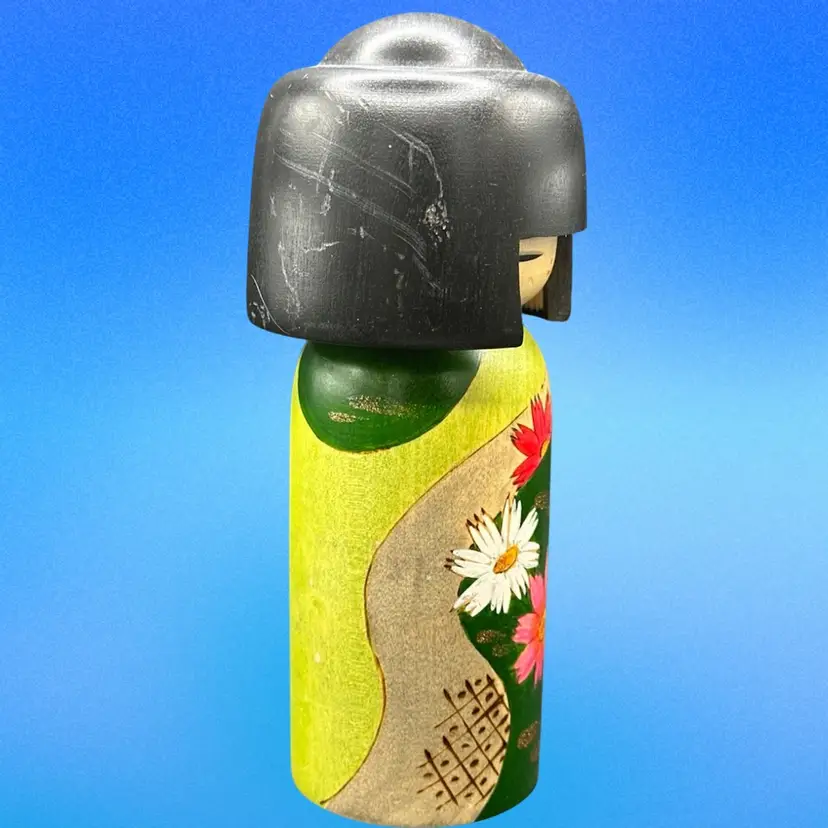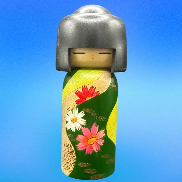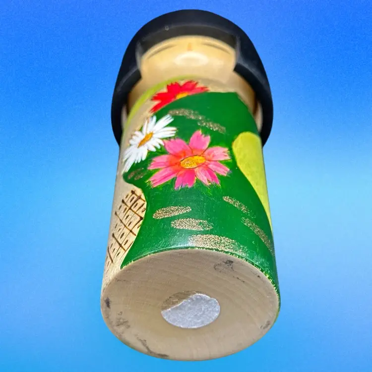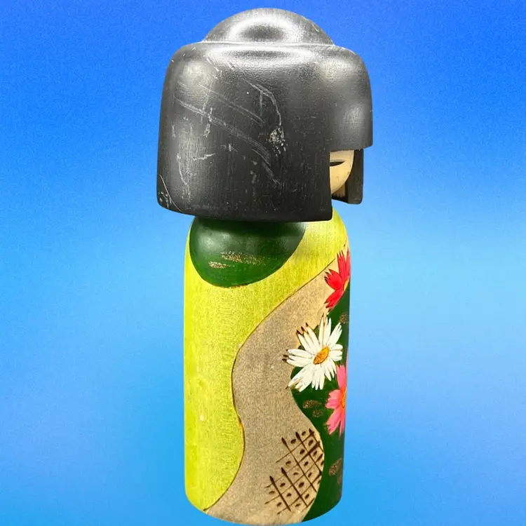 The product is a handmade Japanese folk art Kokeshi doll representing a girl from the Showa era. Signed . this unique collectible piece showcases traditional Japanese culture and craftsmanship. Made in Japan, this Kokeshi doll is a symbol of the artisan's skill and heritage, making it a valuable addition to any cultural or Japanese collectibles collection.