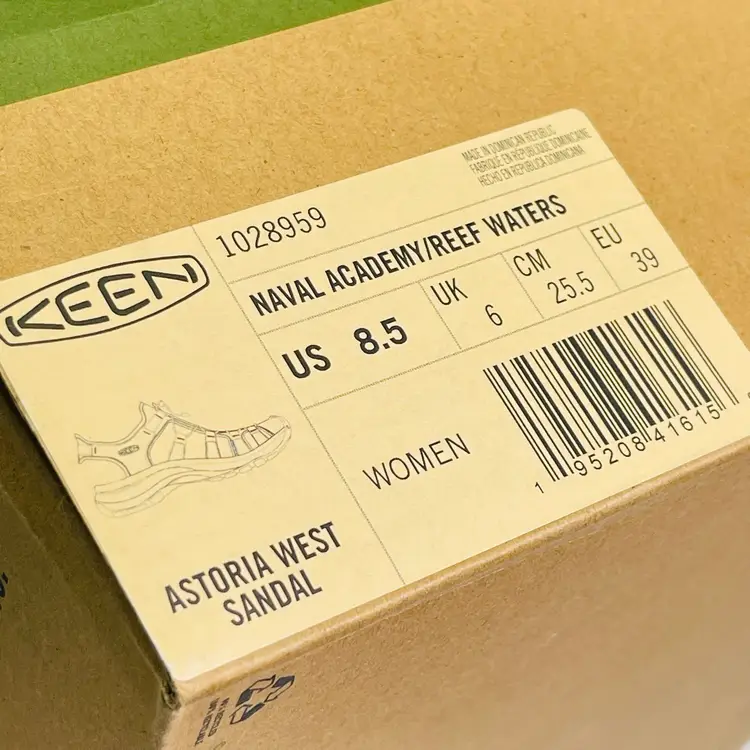 Fresh, versatile KEEN Astoria West sandals in the Naval Academy/Reef Waters colorway. Designed for all-day comfort with a cushioned insole, quick-dry webbing, and a stable, supportive sole. Perfect for walks, travel, summer outings, and light hiking. Brand new with box.