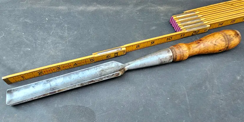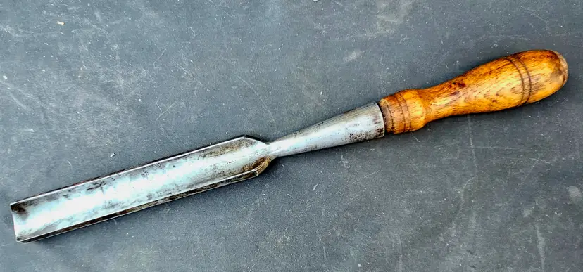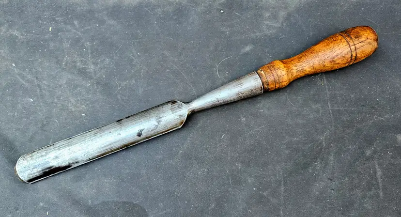 Keen Kutter stamp with star. Out-cannel gouge at 1 inch width and a little over 13 inch overall length. Needs a fresh edge and sharpening.