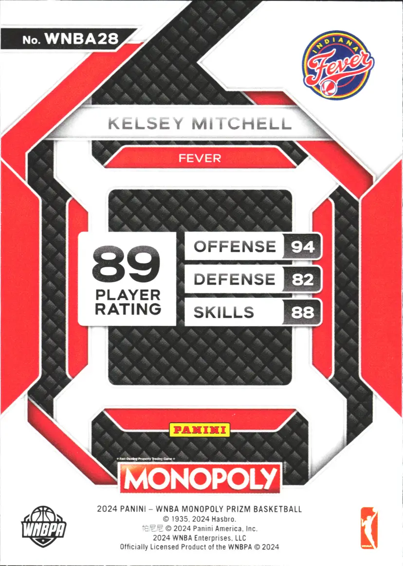 1st time buyer? Get $5 Off with code DISTRICT5 at checkout! Card as shown. All cards $20 and under ship PWE via lettertrackpro [https://www.letter-track.com/registerap.asp?AFID=8757] Sport: Basketball Player/Athlete: Kelsey Mitchell League: Women's National Basketball Association (WNBA), National Basketball Association (NBA) Features: Insert Manufacturer: Panini Type: Sports Trading Card Parallel/Variety: Prizm Autographed: No Year Manufactured: 2024 Event/Tournament: WNBA Finals Vintage: No Graded: No Team: Indiana Fever Season: 2024 Material: Card Stock Original/Licensed Reprint: Original Country/Region of Manufacture: United States